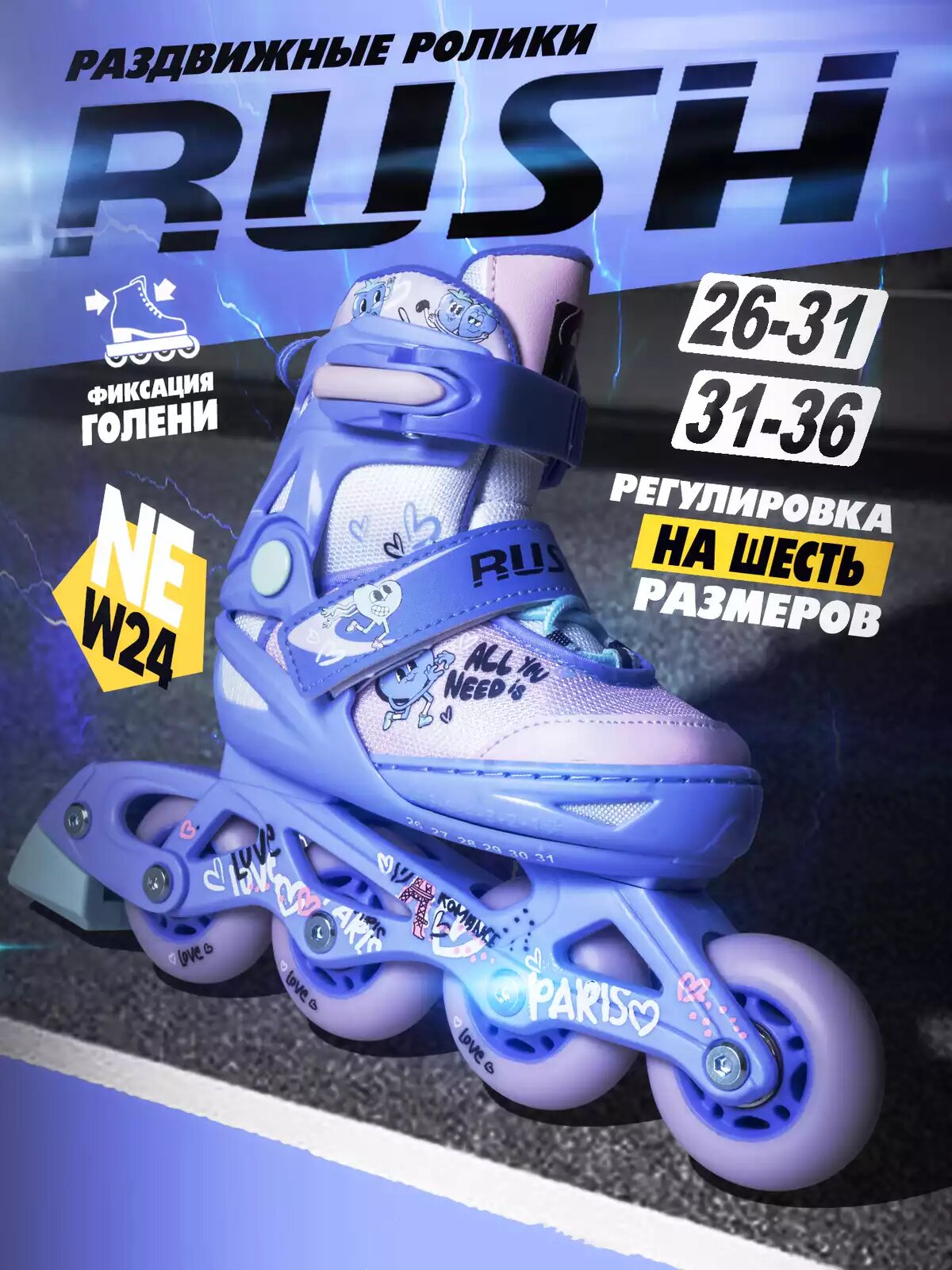 10 цен на Роликовые коньки RUSH ACTION, детские, сиреневые, раздвижные