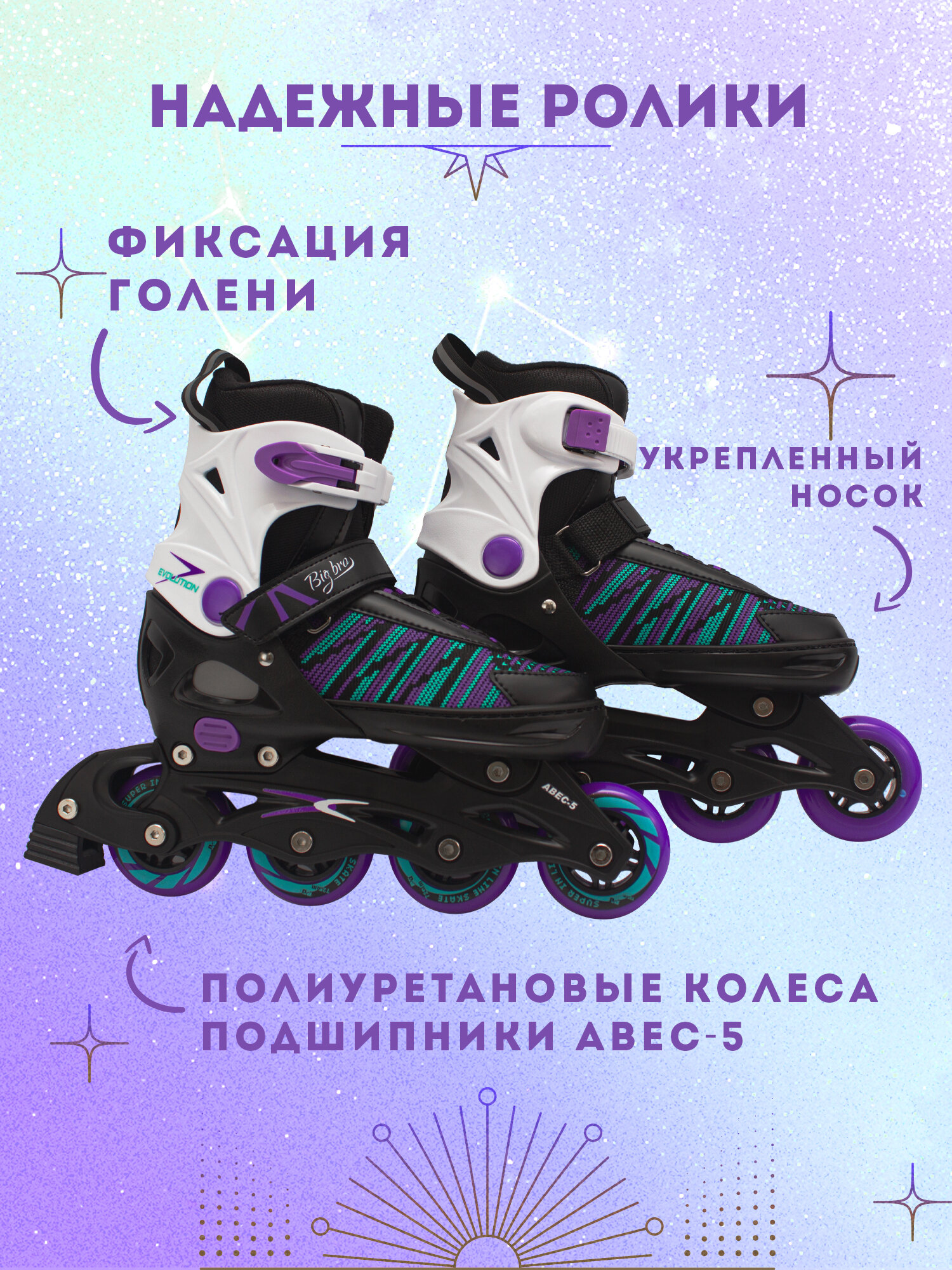 Ролики-коньки BIG BRO GLAM PW-223В-153-1 2в1 раздвижные фигурные 6 590 ₽