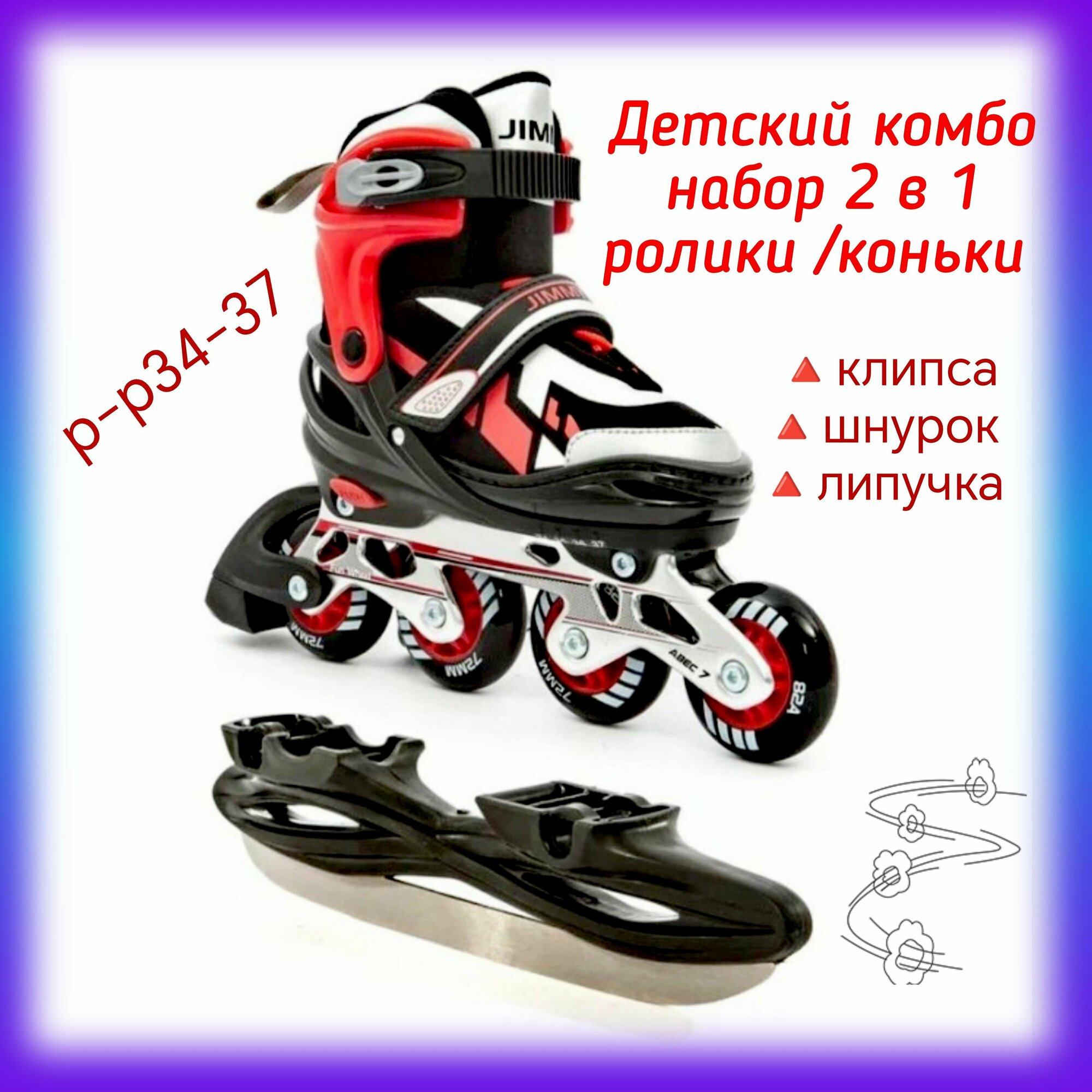 10 цен на Детский набор 2 в 1 ролики/коньки Jimmy Combo Red 34-37р-р