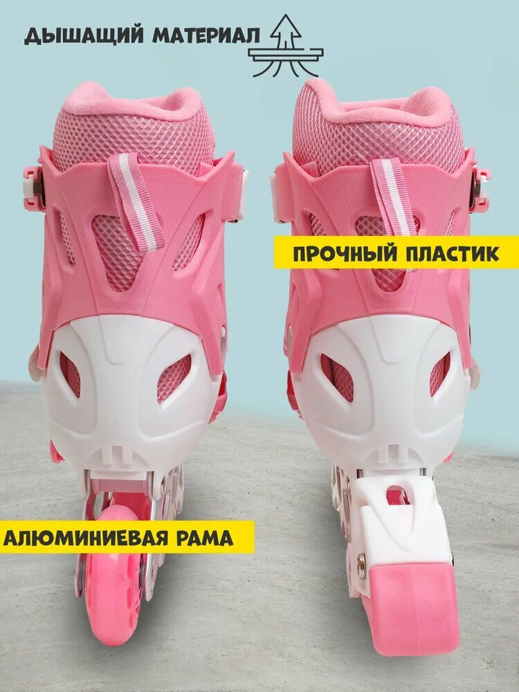 Роликовые коньки Saimaa, с защитой, раздвижные, с подсветкой, розовые информация: