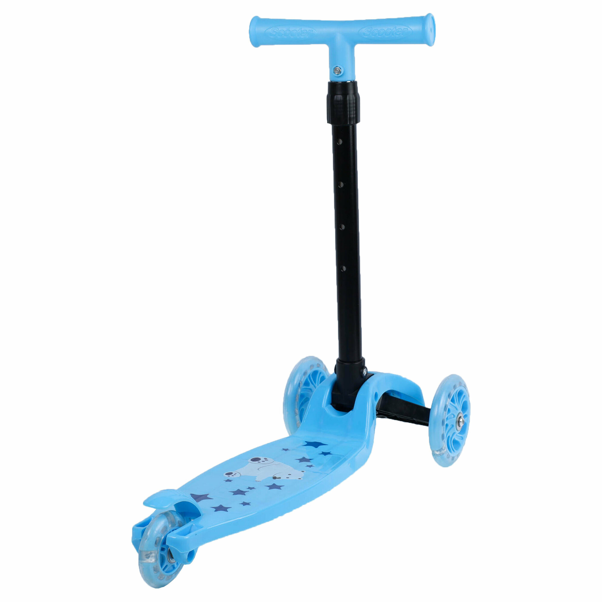Самокат детский трехколесный COMIRON Yeenot "Зверята", регулируемая складная ручка, светящиеся колеса 110 и 75 мм, нагрузка до 40 кг, светло-синий / 1 шт. информация: