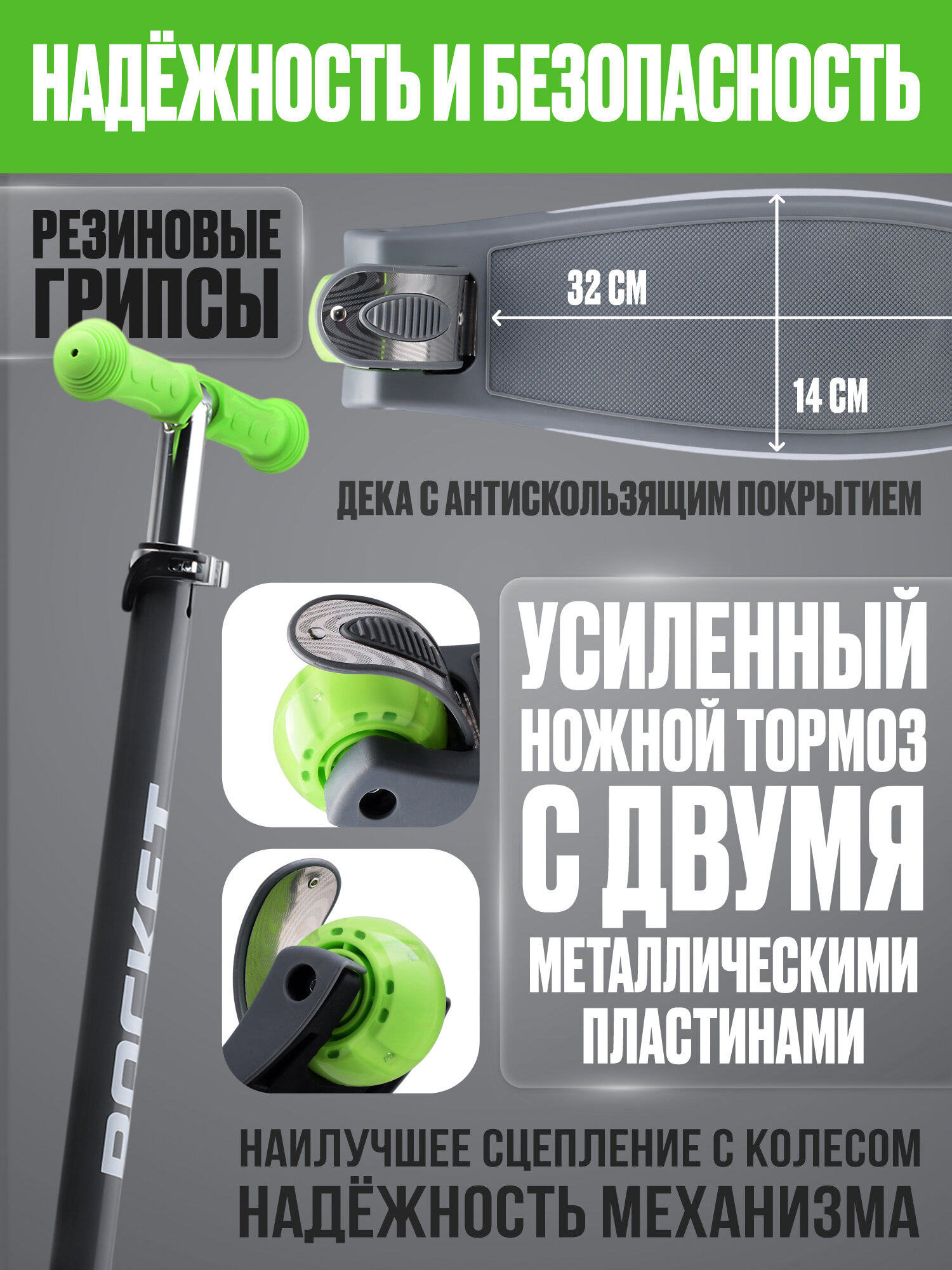 Отзывы на Самокат 3-х колесный детский ROCKET, колеса PU со светом, ABEC 7, светится дека, цвет серый