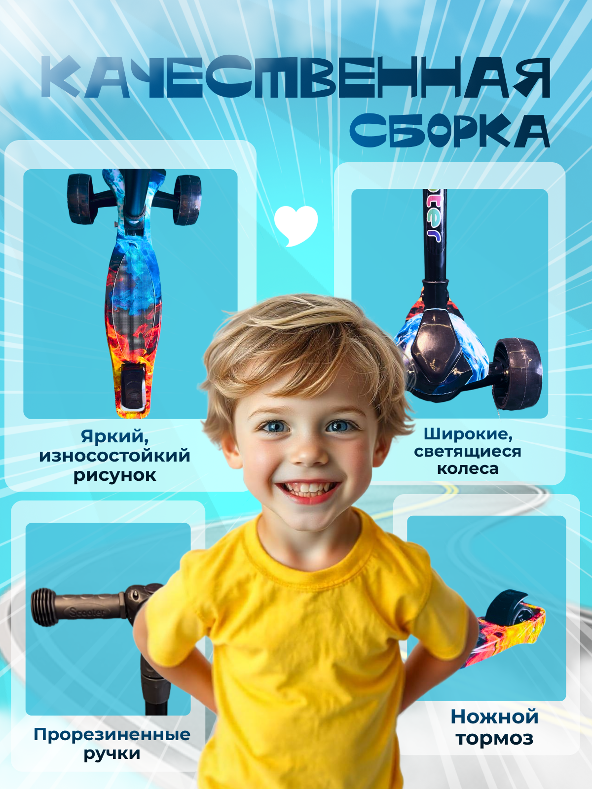 Отзывы на Детский трехколесный самокат Soras с регулировкой высоты руля и складным механизмом