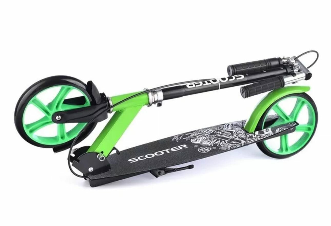 Двухколесный самокат Scooter с ручным тормозом, колеса 200мм, складной, от 7 лет, зеленый информация:
