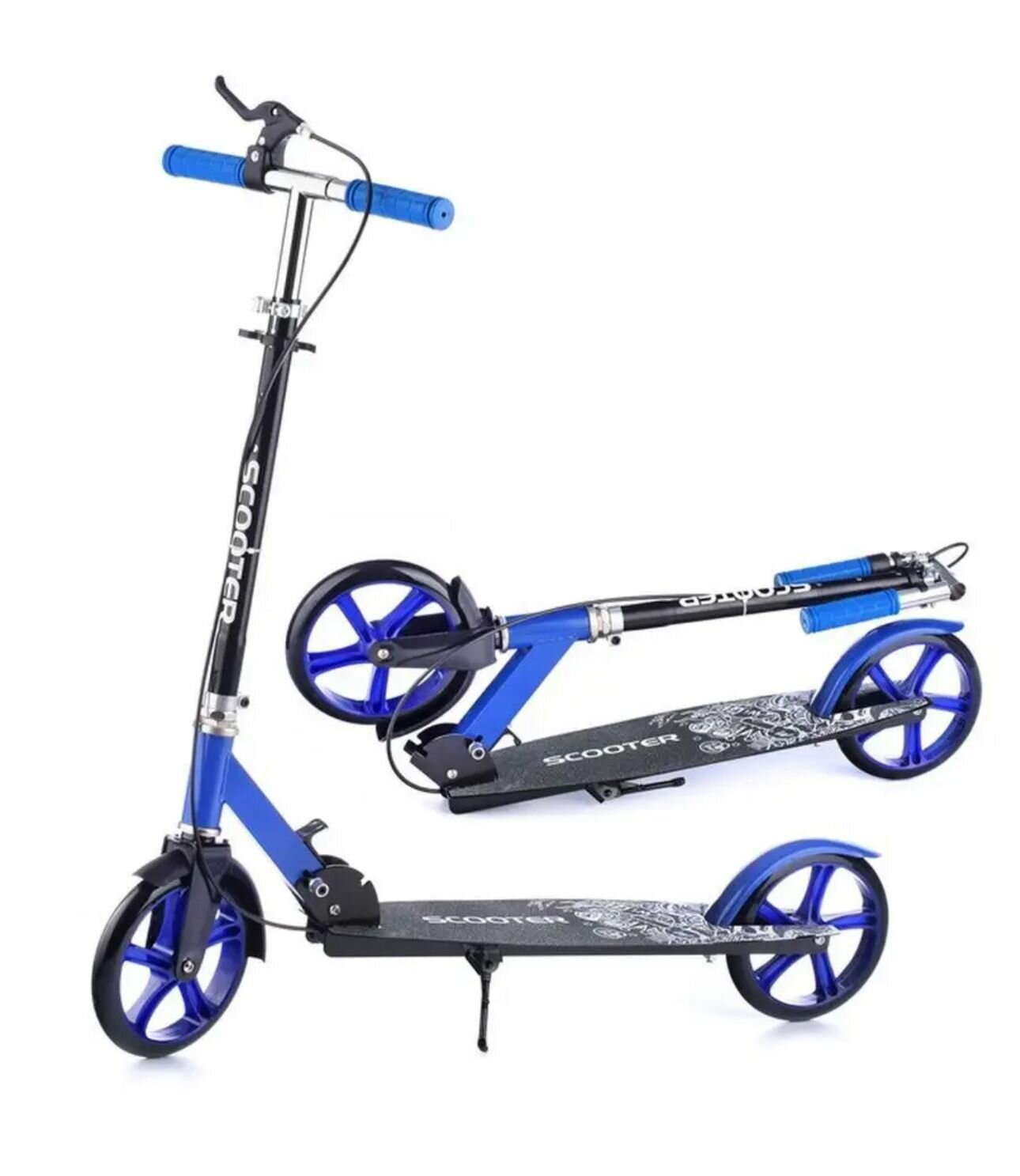 Отзывы на Двухколесный самокат Scooter с ручным тормозом, колеса 200мм, складной, от 7 лет, синий