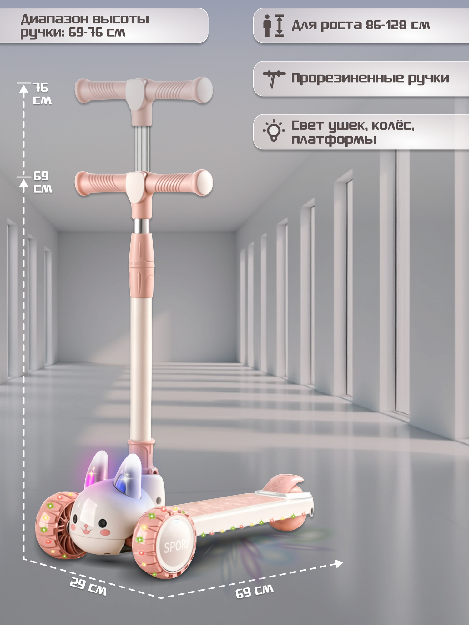 Отзывы на Детский трехколесный самокат до 35 кг, светящиеся PU колеса, высота ручки 69 - 76 см, звуковые и световые эффекты
