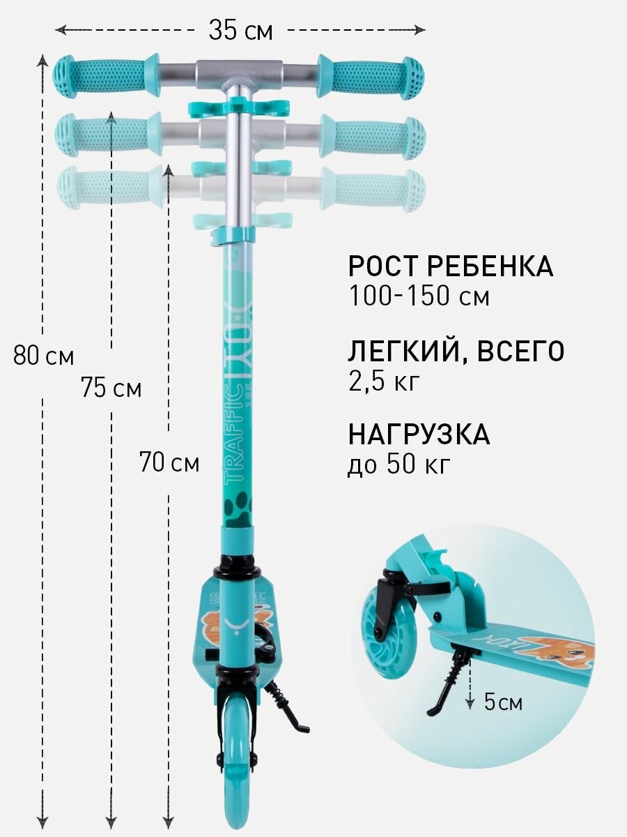 Самокат детский складной Yoki Traffic 125, светящиеся колёса, бирюзовый информация: