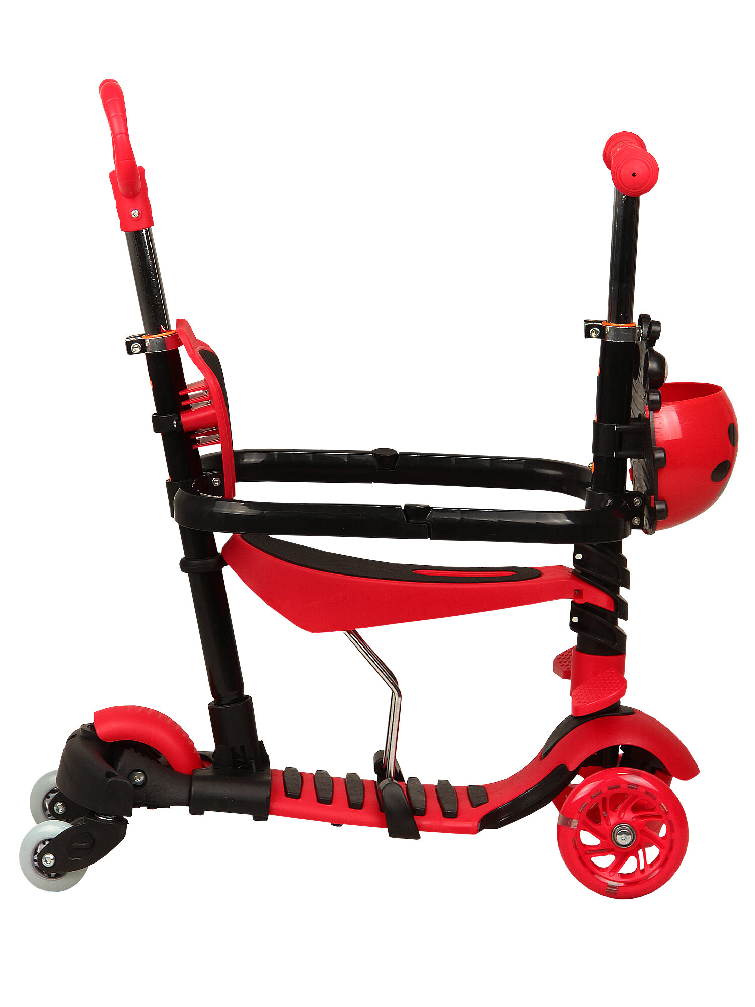 Самокат трехколесный 5 в 1 для детей с родительской ручкой, 1-5 лет, светящиеся колеса, красный информация: