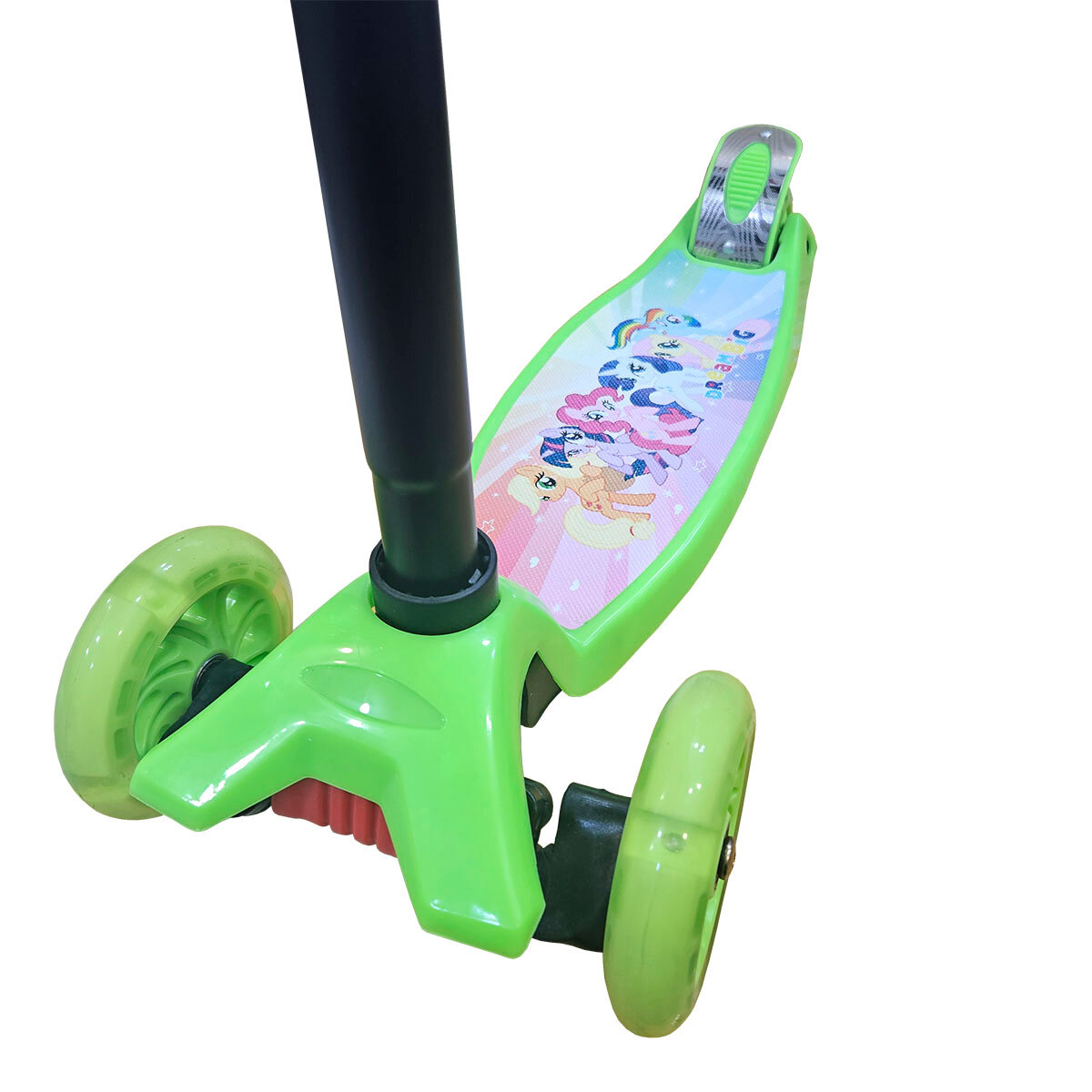 Самокат трехколесный детский TOPEMOUNT "Gold Scooter" , музыкальный, светящаяся дека, фара, Зеленый