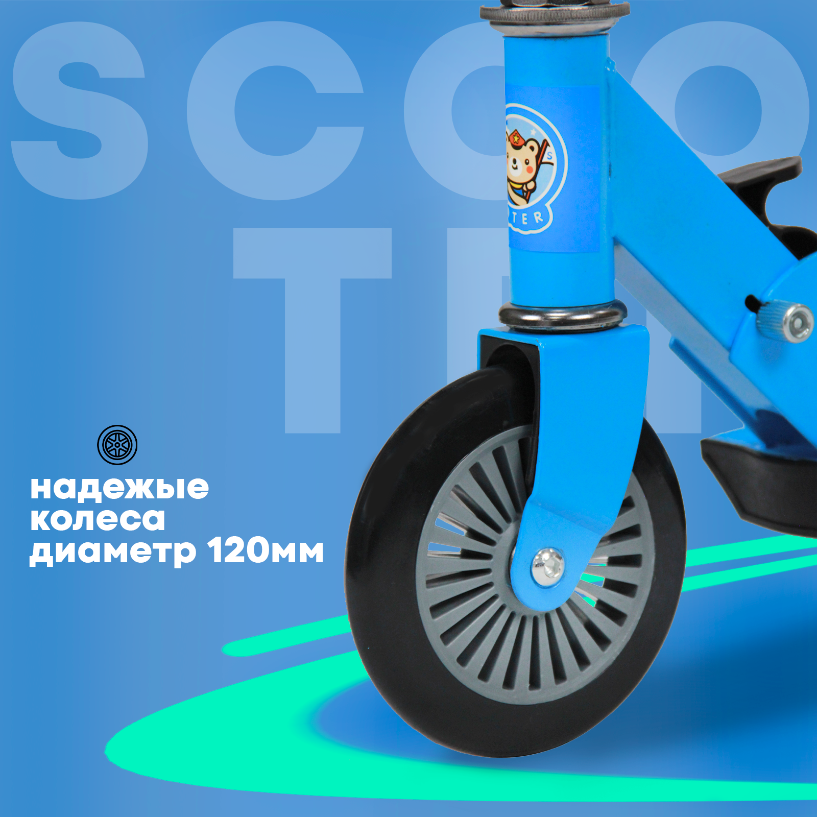 Самокат детский двухколесный, колеса 120мм, складной, сталь, подножка, голубой информация: