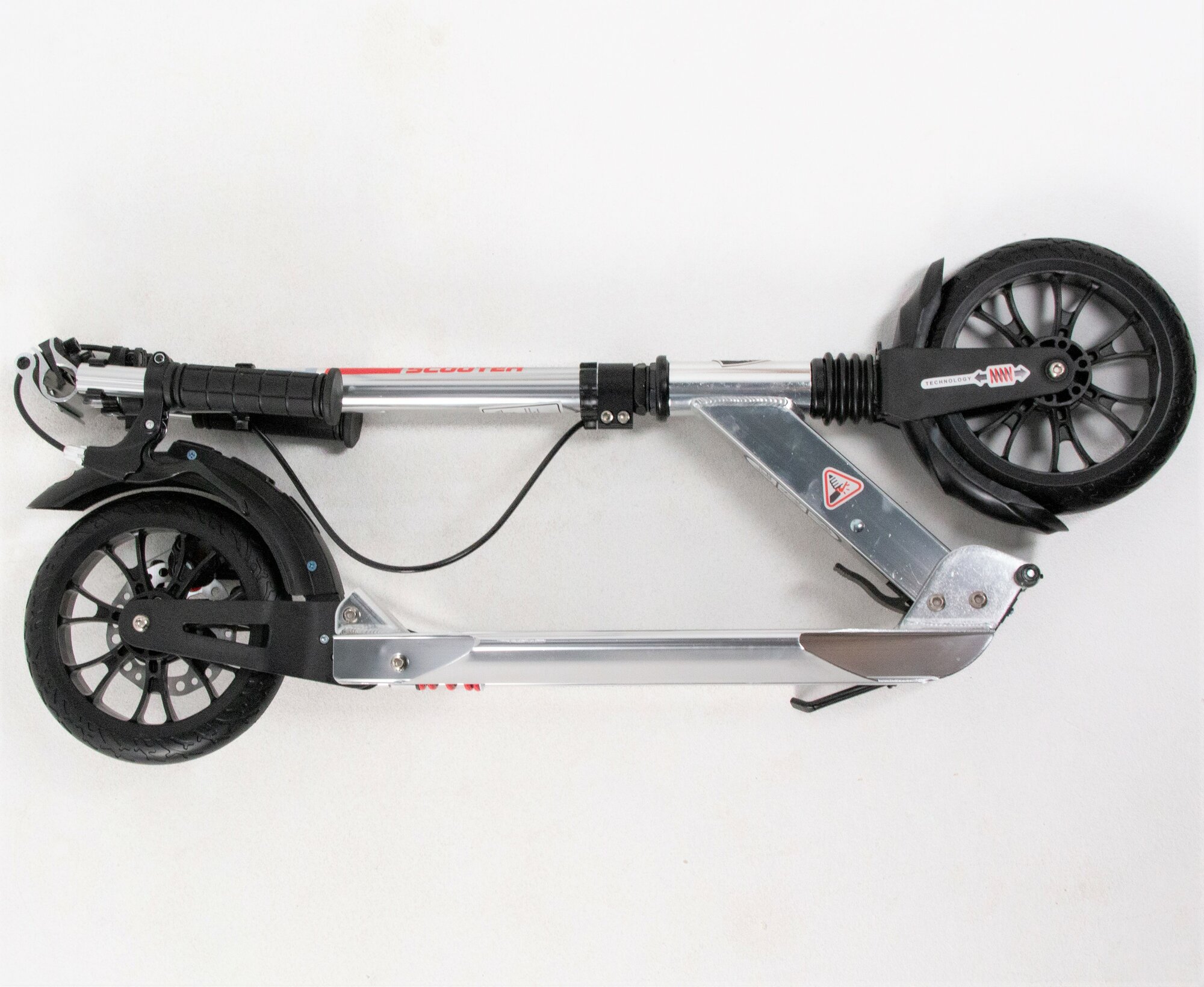 Двухколёсный самокат Urban складной, амортизаторы и дисковый тормоз US Scooter Disk Brake 2025 Серебристый с бутылкой информация: