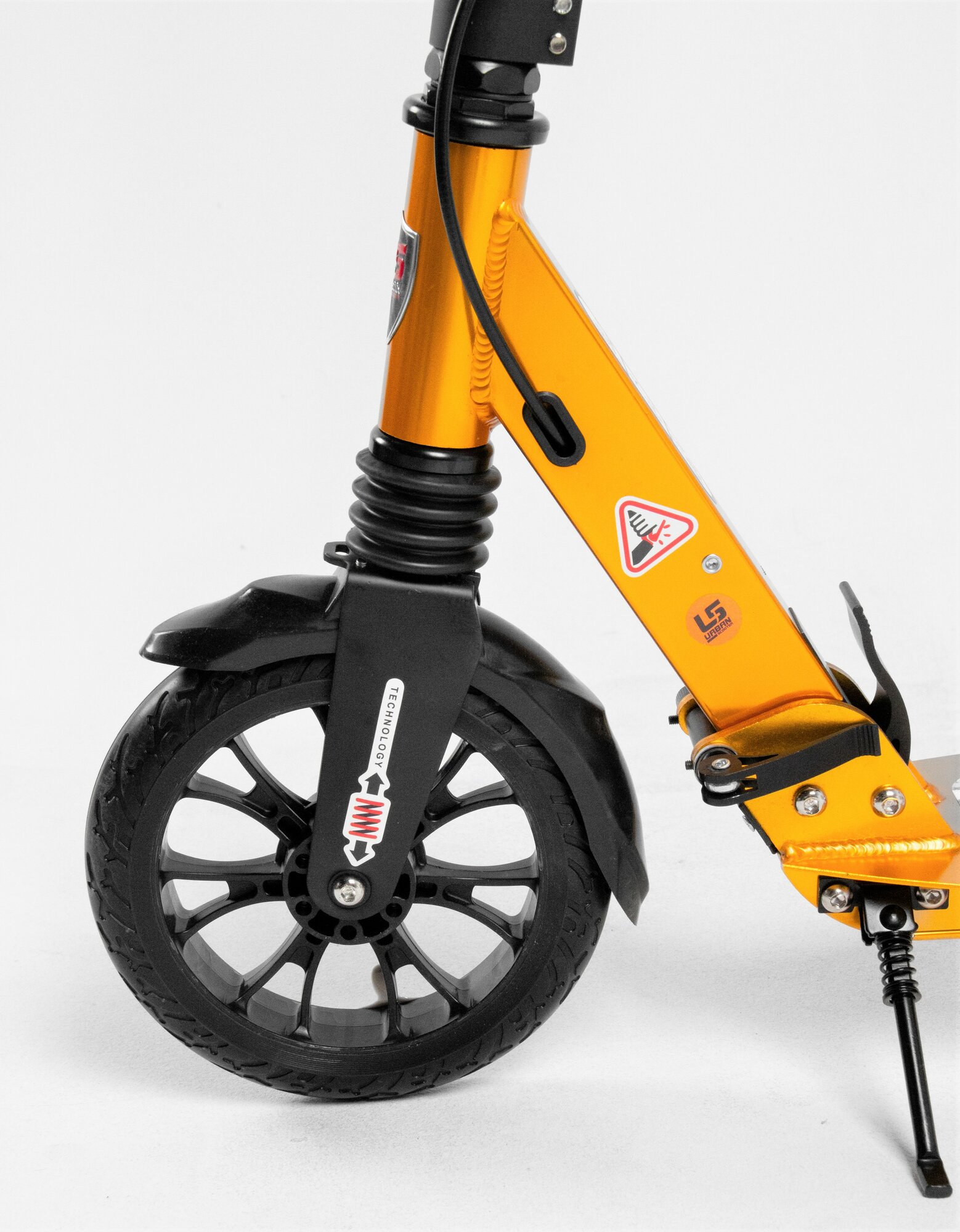 Двухколёсный самокат Urban складной, амортизаторы и дисковый тормоз US Scooter Disk Brake 2025 Золотой с бутылкой информация: