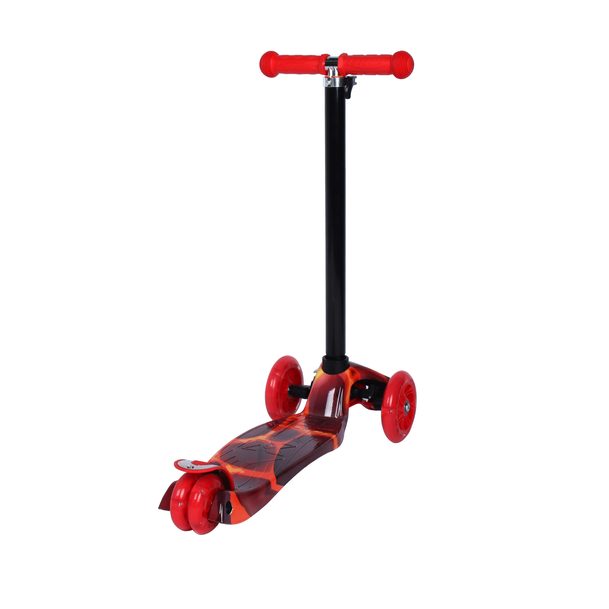 Самокат трехколесный детский до 50 кг с рисунком и со светящимися колесами, цвет красная лава информация: