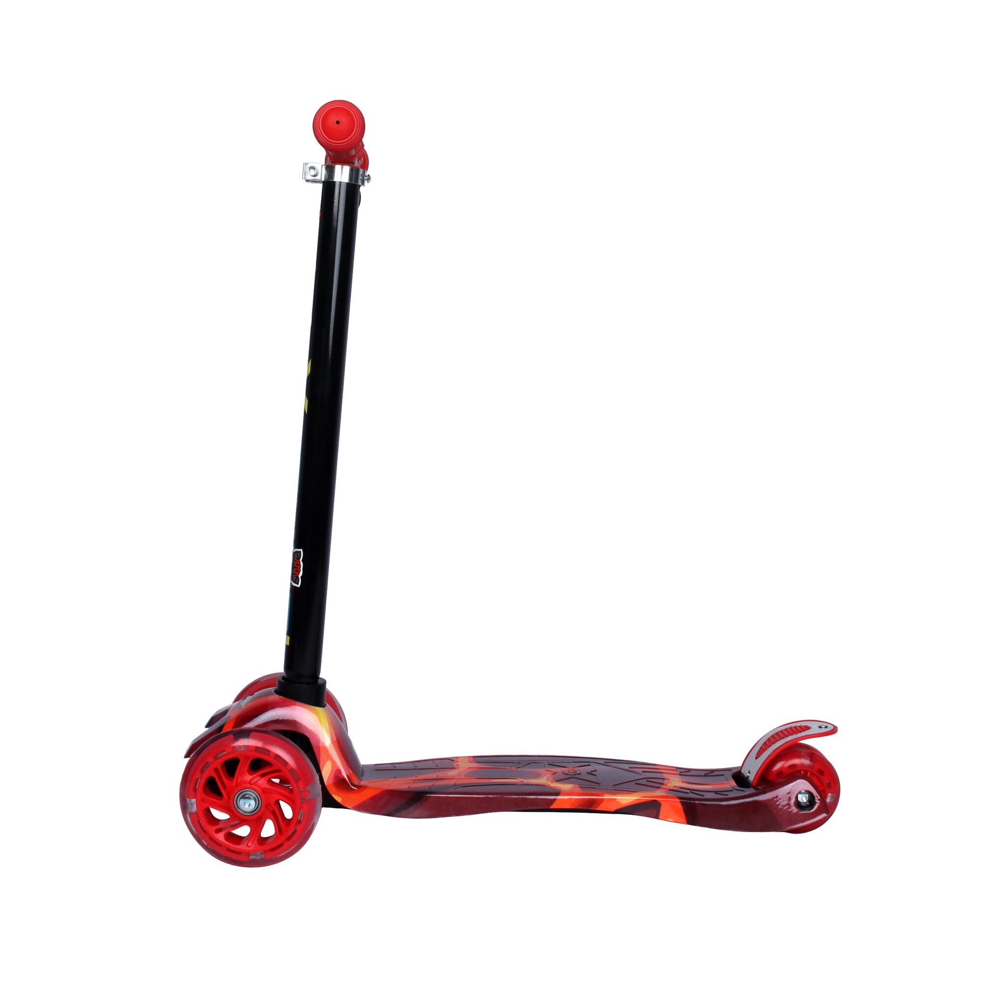 Самокат трехколесный детский до 50 кг с рисунком и со светящимися колесами, цвет красное пламя 2 499 ₽