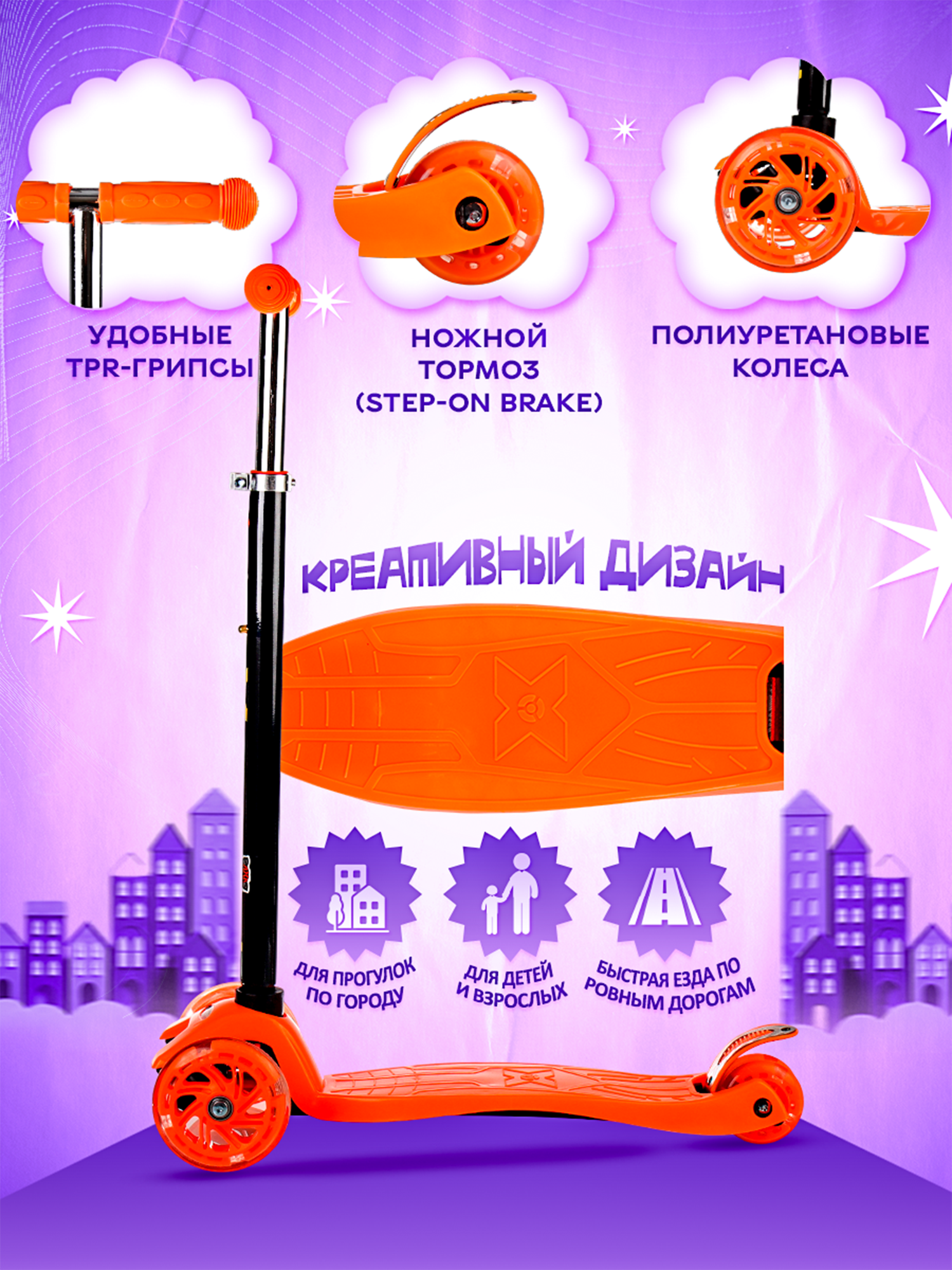 Отзывы на Самокат детский трехколесный COMIRON Yeenot 2х2, регулируемая ручка, усиленное двойное заднее колесо, светящиеся колеса 116 и 75 мм, нагрузка до 50 кг, ABEC 7, оранжевый / 1 шт.