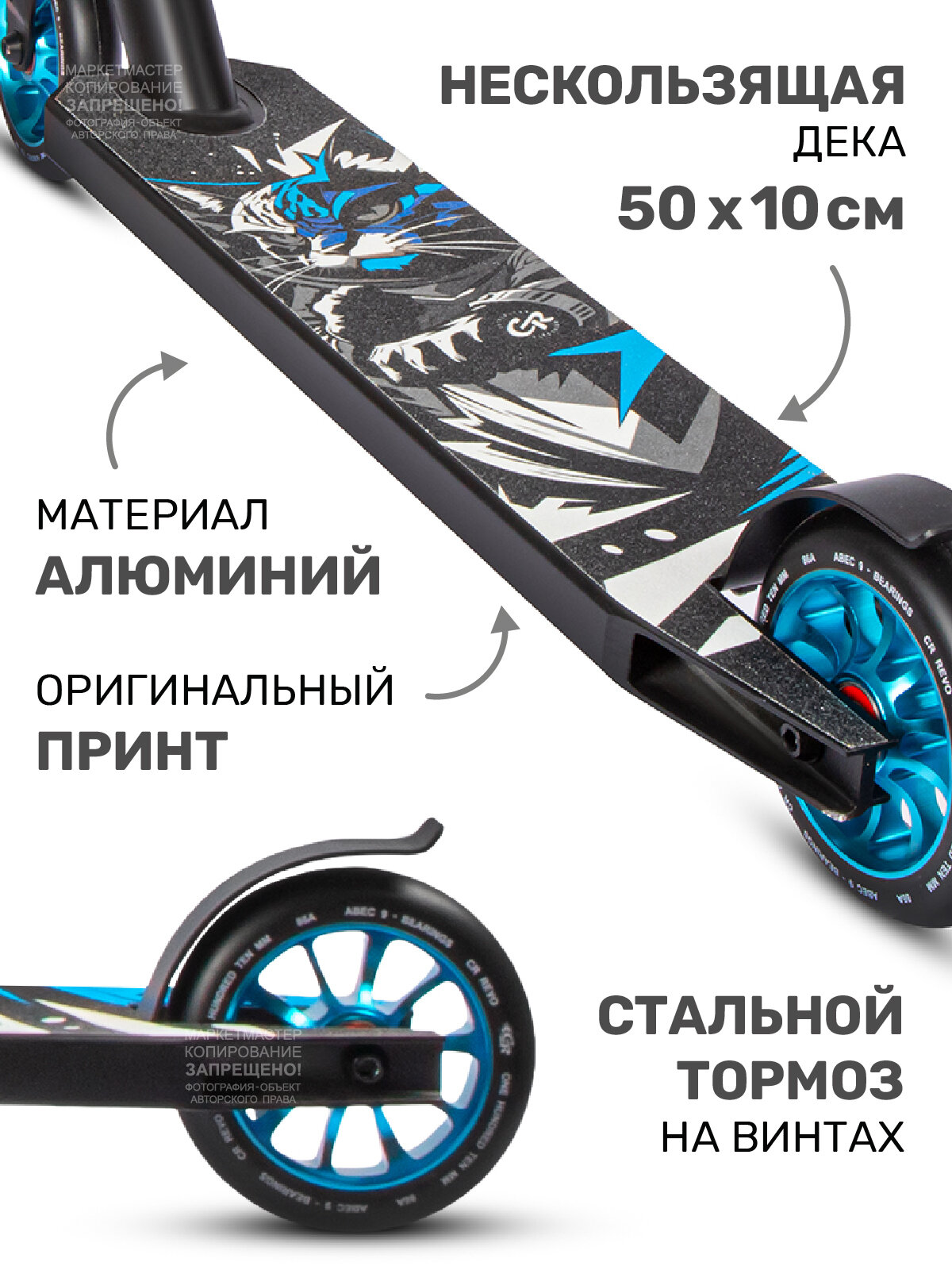 Самокат трюковый CITYRIDE TEMPO, PU 100/86 А, алюминиевая дека 33/10, стальной тормоз на пружине, CR-SS-04TEB 5 700 ₽