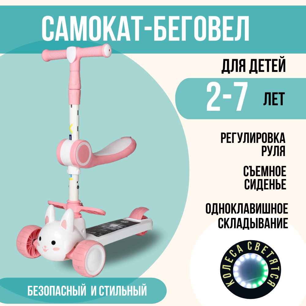 Самокат 3-х колесный с сиденьем COMIRON, светящиеся колеса информация: