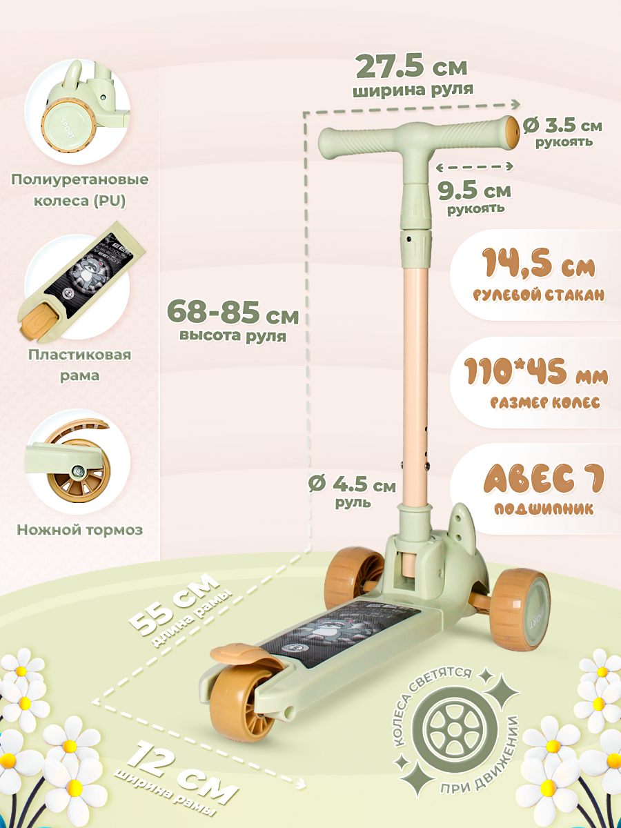 Отзывы на Детский самокат с сиденьем и светящимися колесами, 3 колеса, регулировка высоты руля