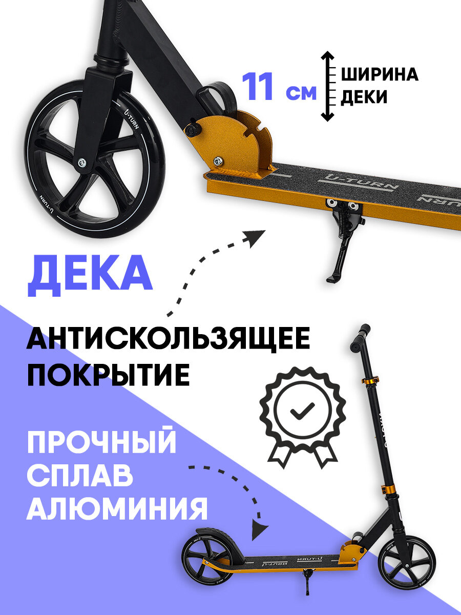 Самокат U-Turn серия "COMFORT+" двухколесный, регулировка высоты руля, складной, нагрузка до 100 кг, желтый 4 199 ₽