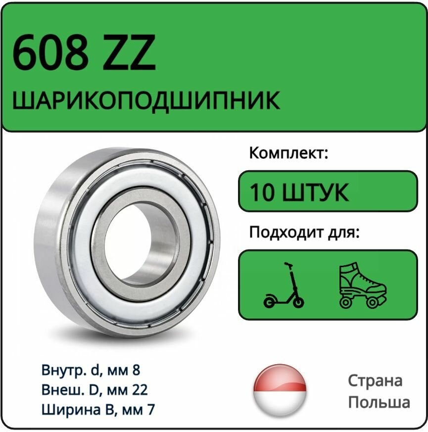 10 цен на Однорядный радиальный шарикоподшипник 608 ZZ MTM (Польша) 10 шт.