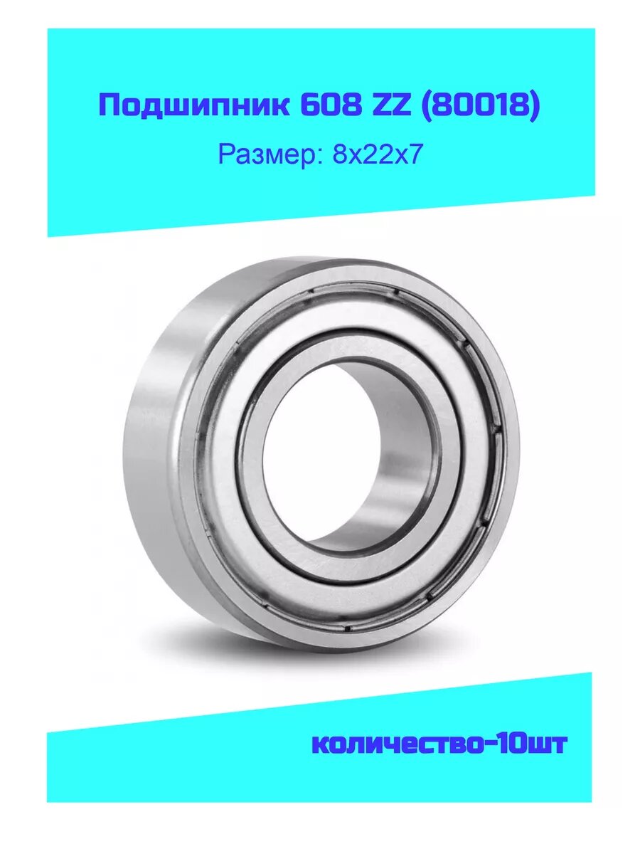 10 цен на Подшипник NTL BEARING 608ZZ, (180018 подшипник 80018, 608 2z, 6082z, 608-2Z) для роликов, самокатов, скейтбордов, черный, 8х22х7 мм, комплект - 10 шт.