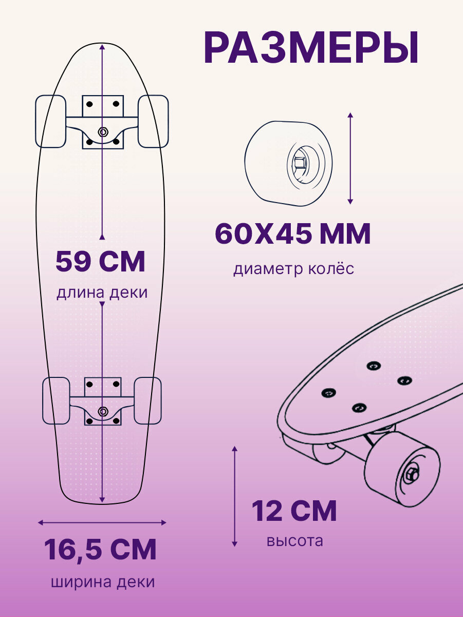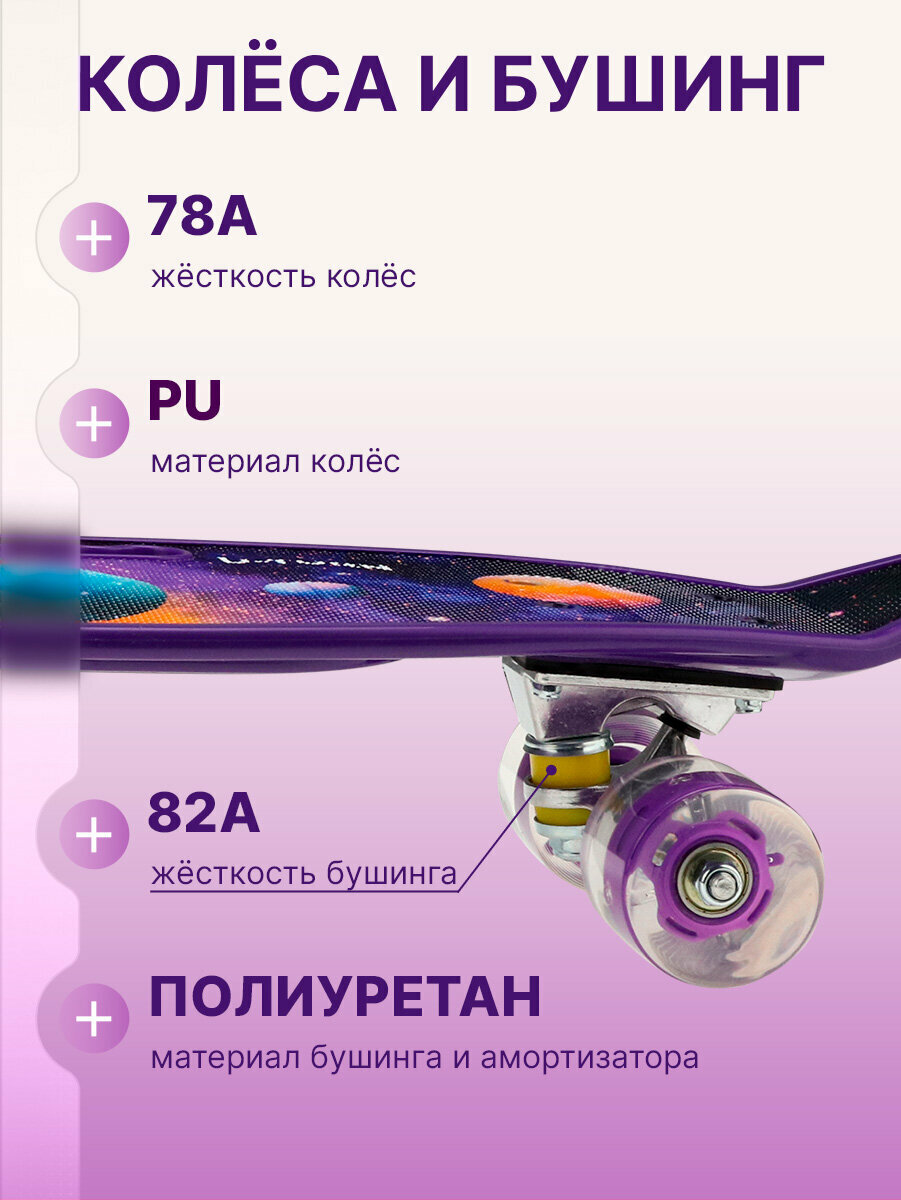Отзывы на Скейтборд-Пенниборд, основа алюминий, 59х16.5х12 см, светящиеся колеса PU 60х45 мм, фиолетовый, космос