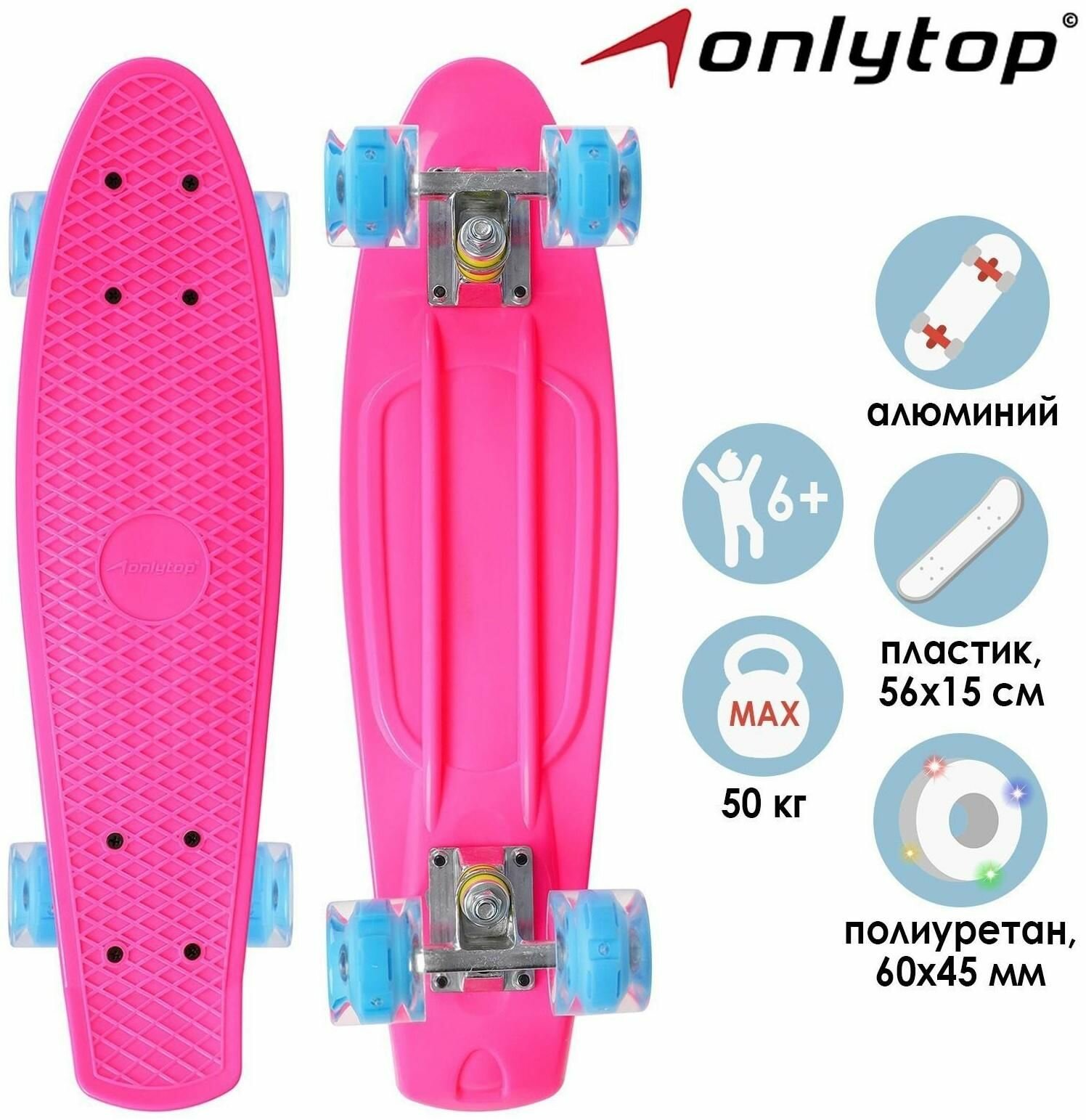 Пенниборд 56х15 см, колеса световые PU 60х45 см, фуксия информация: