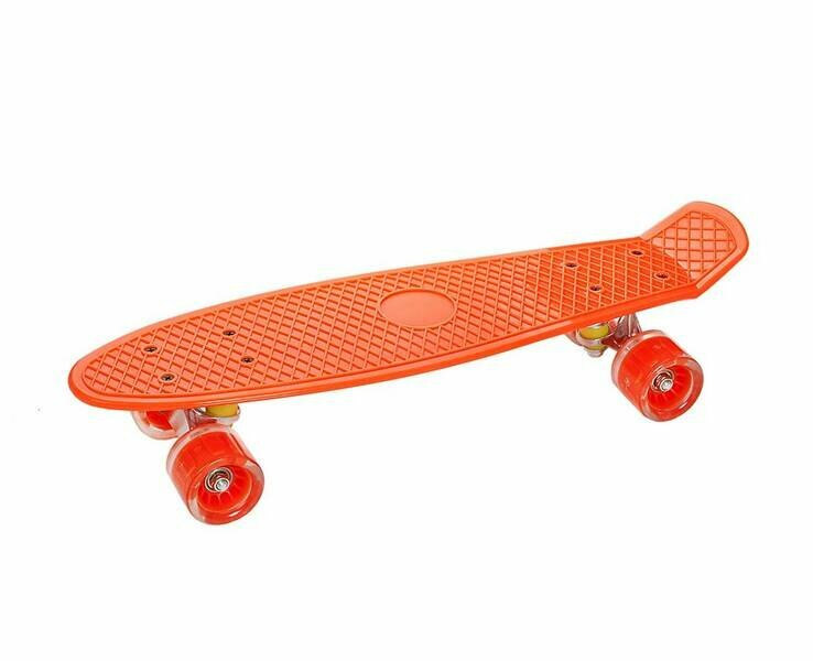 Скейтборд пластиковый, широкие колеса PU со светом, стойка: алюминиевая, 56*15 см, Цвет оранжевый информация: