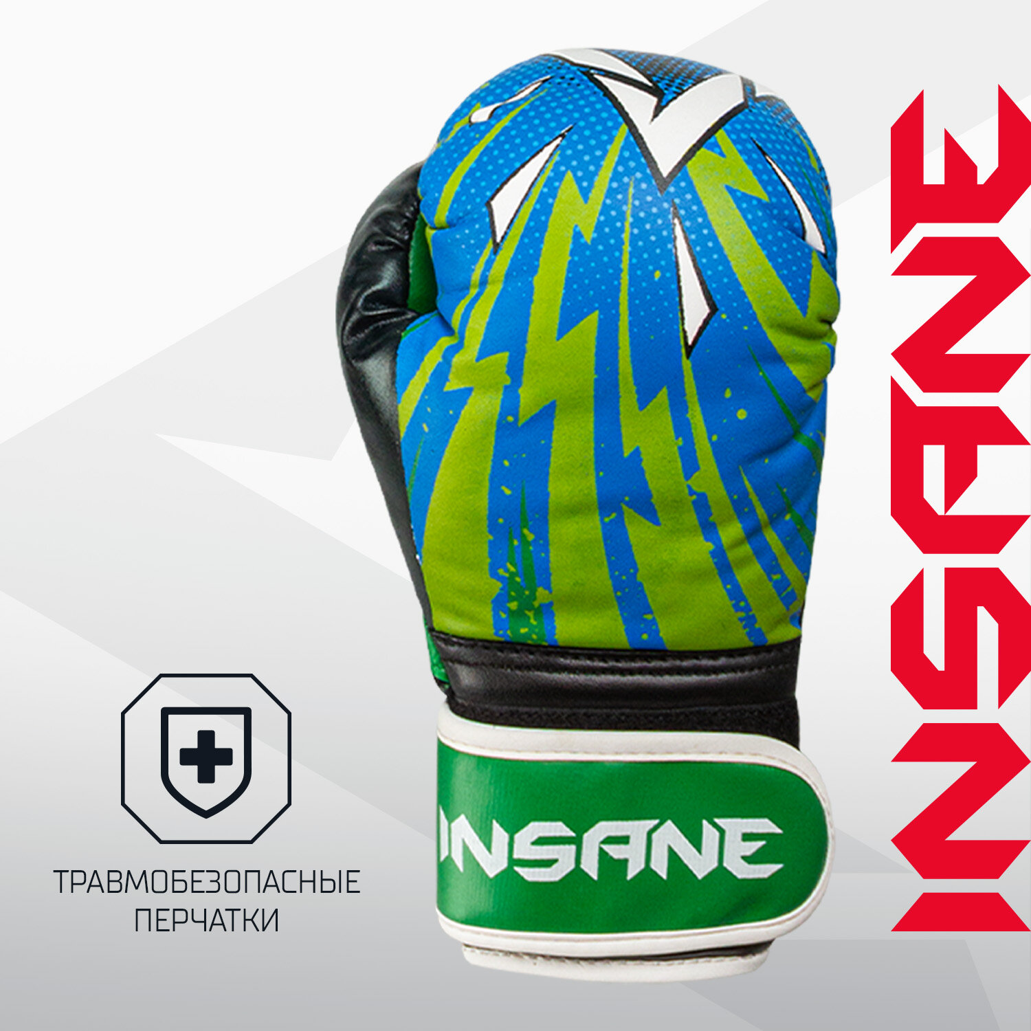 Отзывы на Набор для бокса INSANE DODGER детский. Боксерские перчатки 4 OZ, лапы 23х17x4 см, цвет синий/зеленый