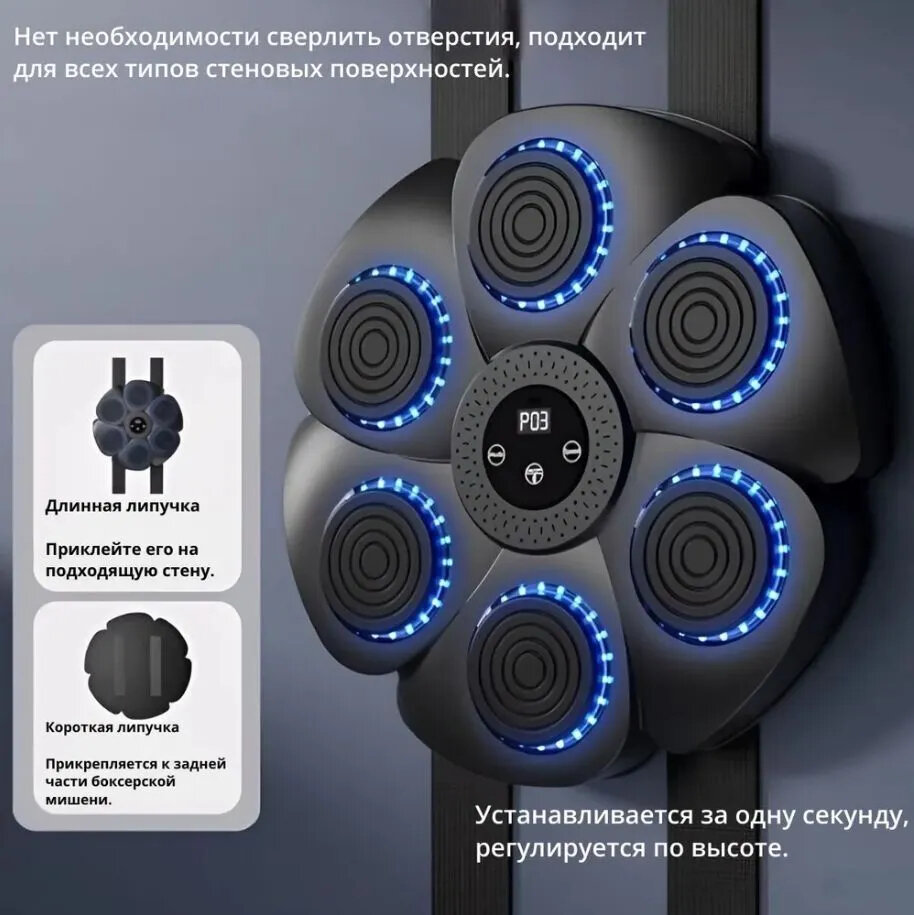 Боксерский тренажер настенный Bluetooth с перчатками, Черный (музыкальный, мишень для бокса, интерактивный) информация: