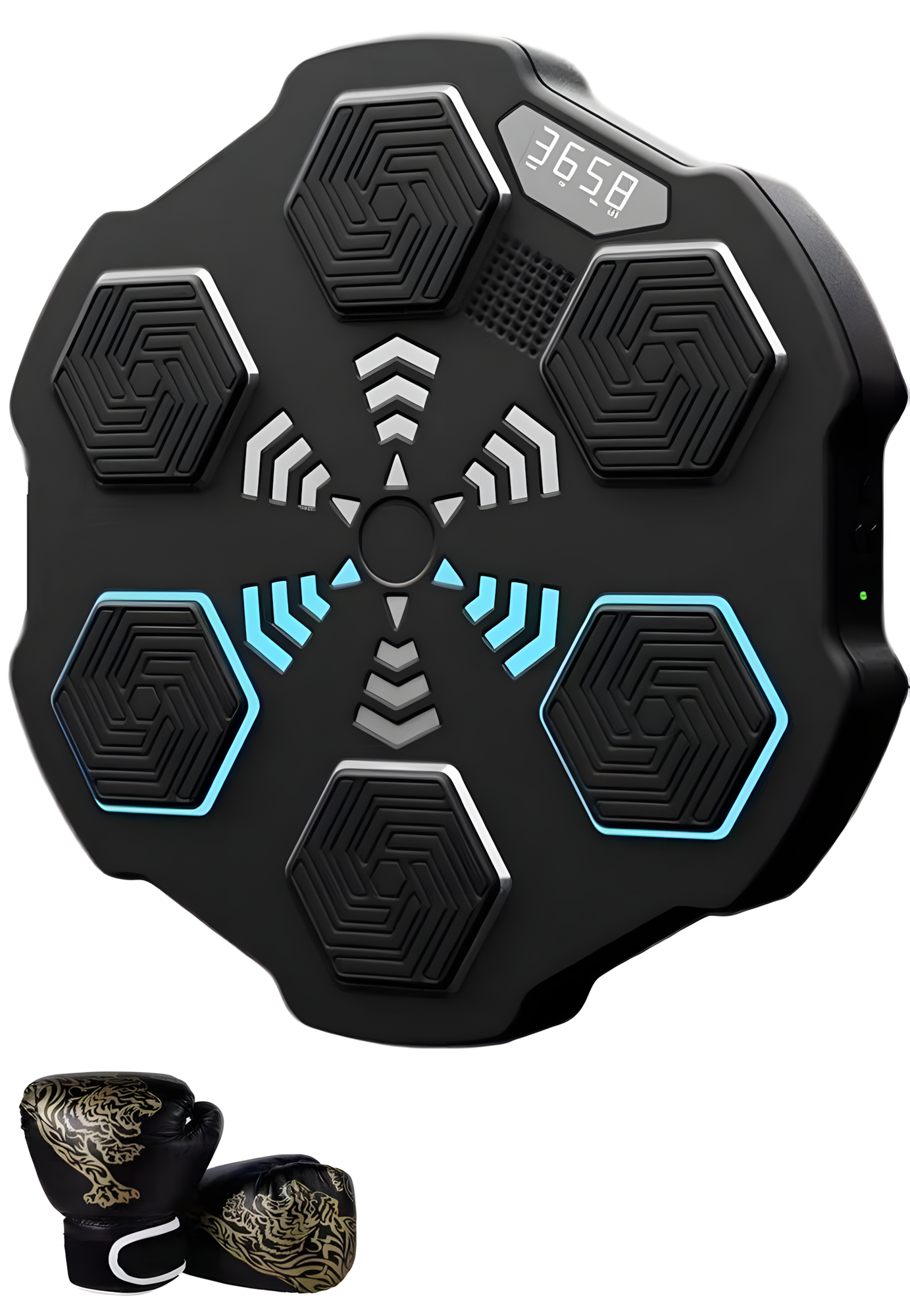Настенный электронный тренажёр для бокса QJB-03 + черные перчатки с узором тигра для детей, черный информация: