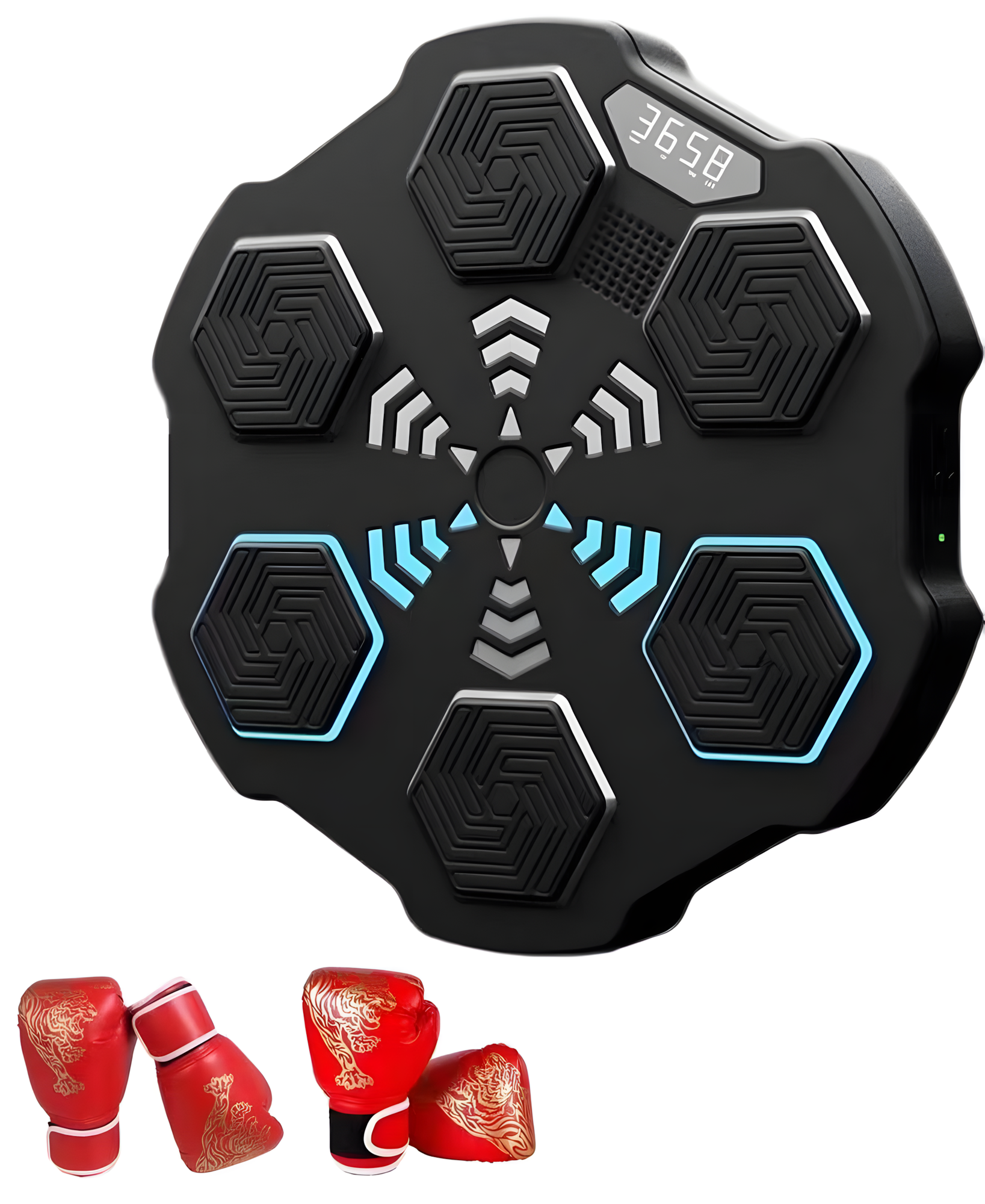 Настенный электронный тренажёр для бокса QJB-03 + две пары красных перчаток с узором тигра для детей и взрослых, черный информация: