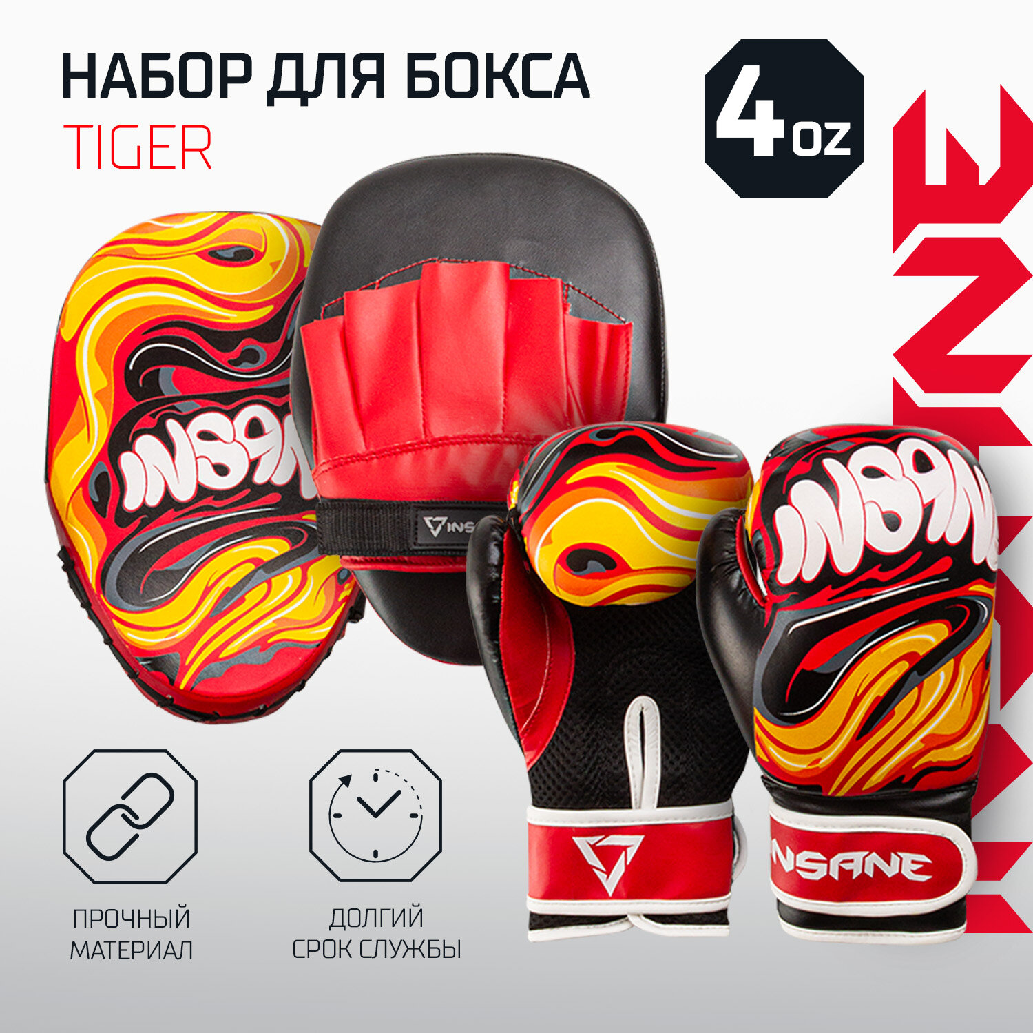 Набор для бокса INSANE TIGER детский. Боксерские перчатки 4 OZ, лапы 23х17x4 см, цвет красный/черный информация:
