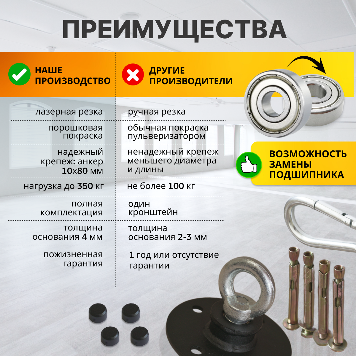 Отзывы на Кронштейн поворотный потолочный, для подвеса боксерской груши, мешка, гамака, кресла и качель