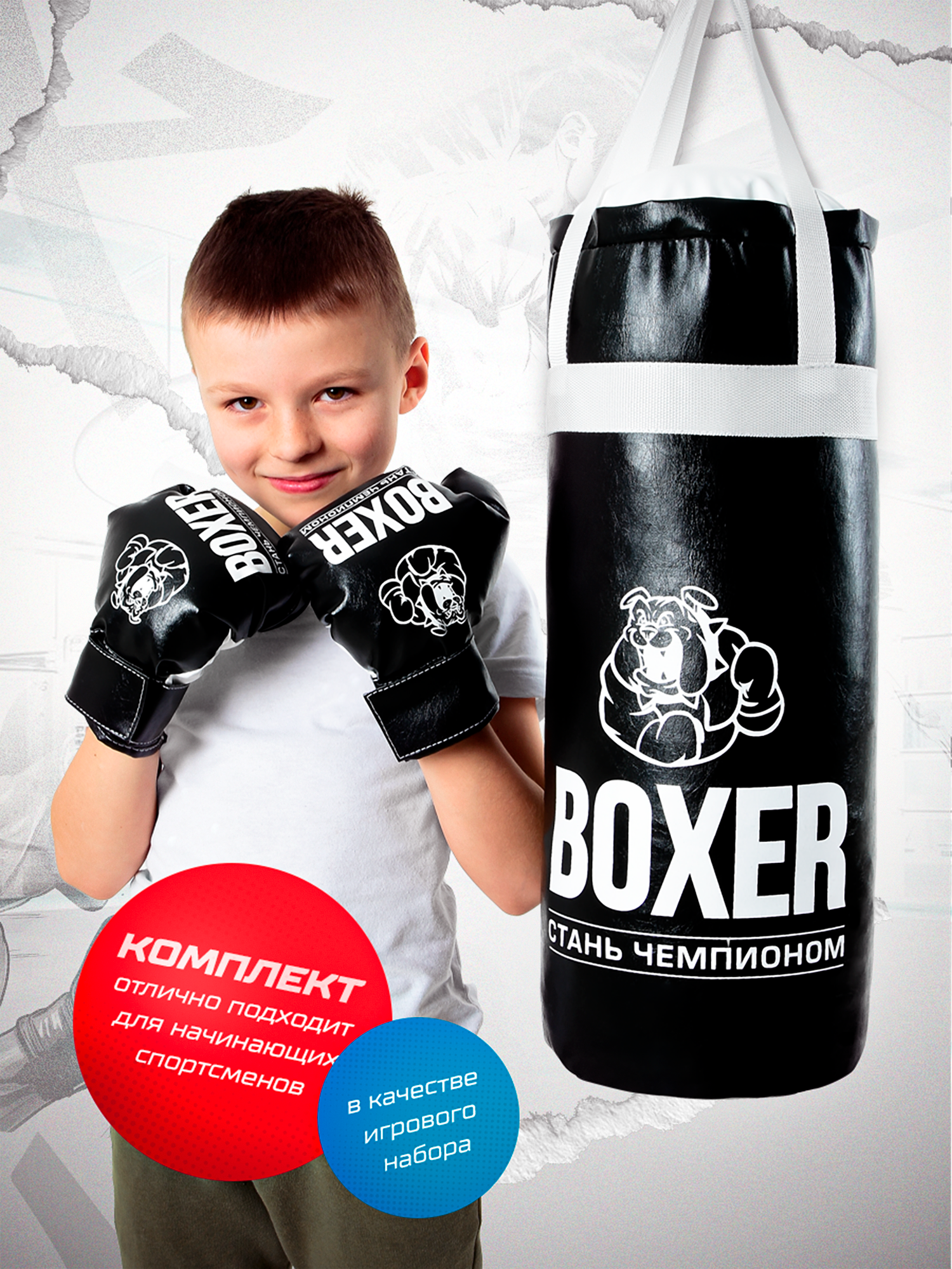 Груша боксерская детская подвесная 50 см и перчатки для бокса MEGA TOYS игровой набор комплекс для детей / спортивный уголок для улицы и дома информация: