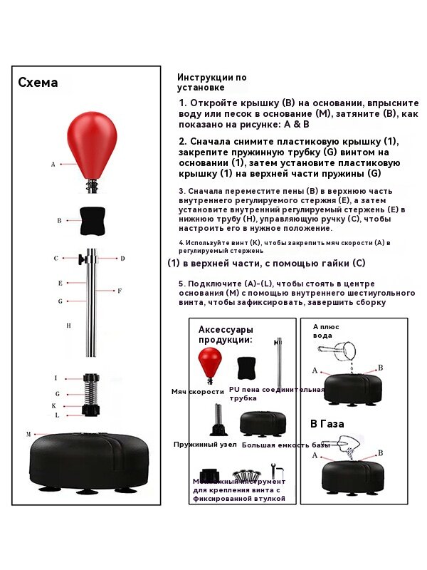 Боксерский тренировочный мяч "Спорт", с регулируемой высотой, красный, синтетический наполнитель информация: