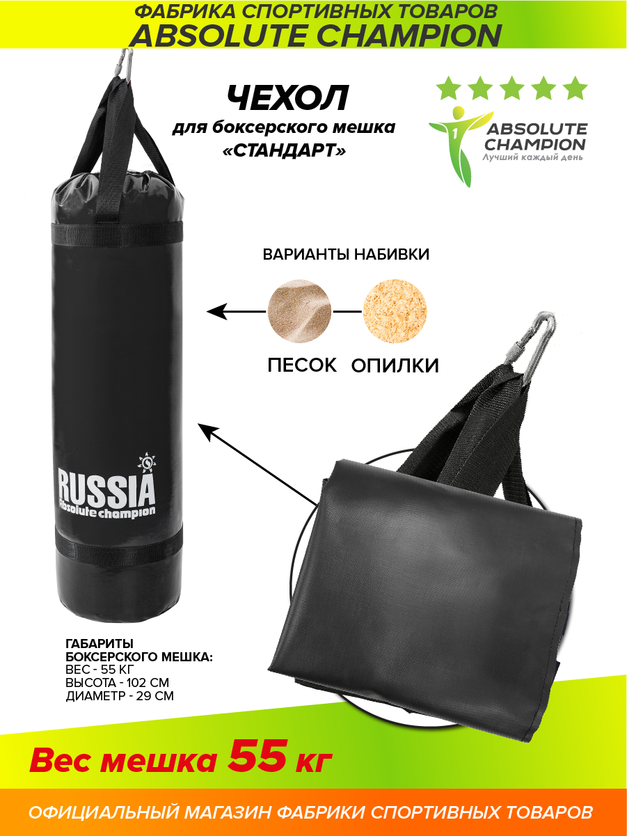 Чехол для Груши боксерской, мешок для бокса спорт Стандарт 55 кг черный информация: