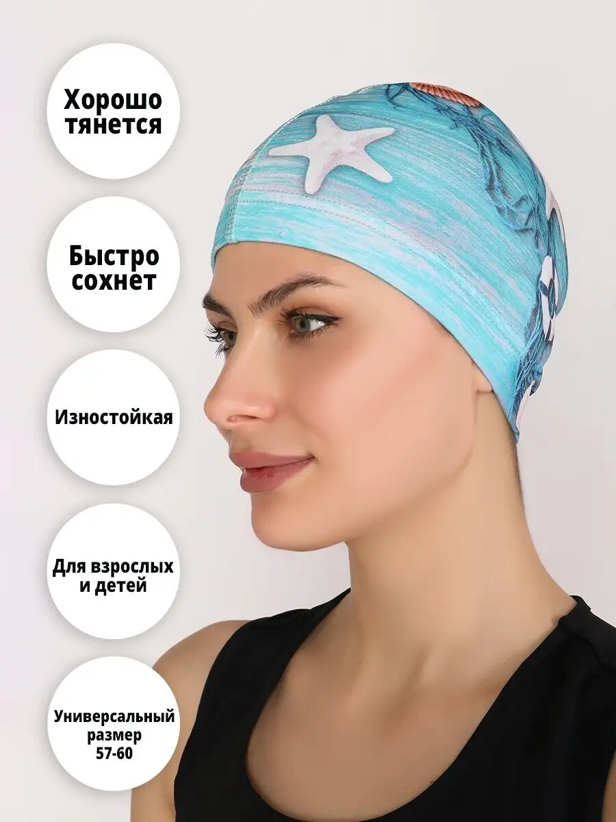 Шапочка для бассейна, водных видов спорта и плавания из микрофибры без логотипа (бирюзовый) 57-60 информация: