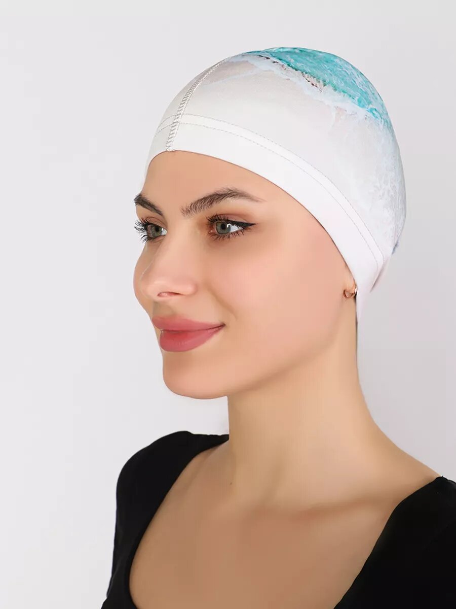10 цен на Шапочка для бассейна, водных видов спорта и плавания из микрофибры без логотипа (бежевый/морской) 57-60