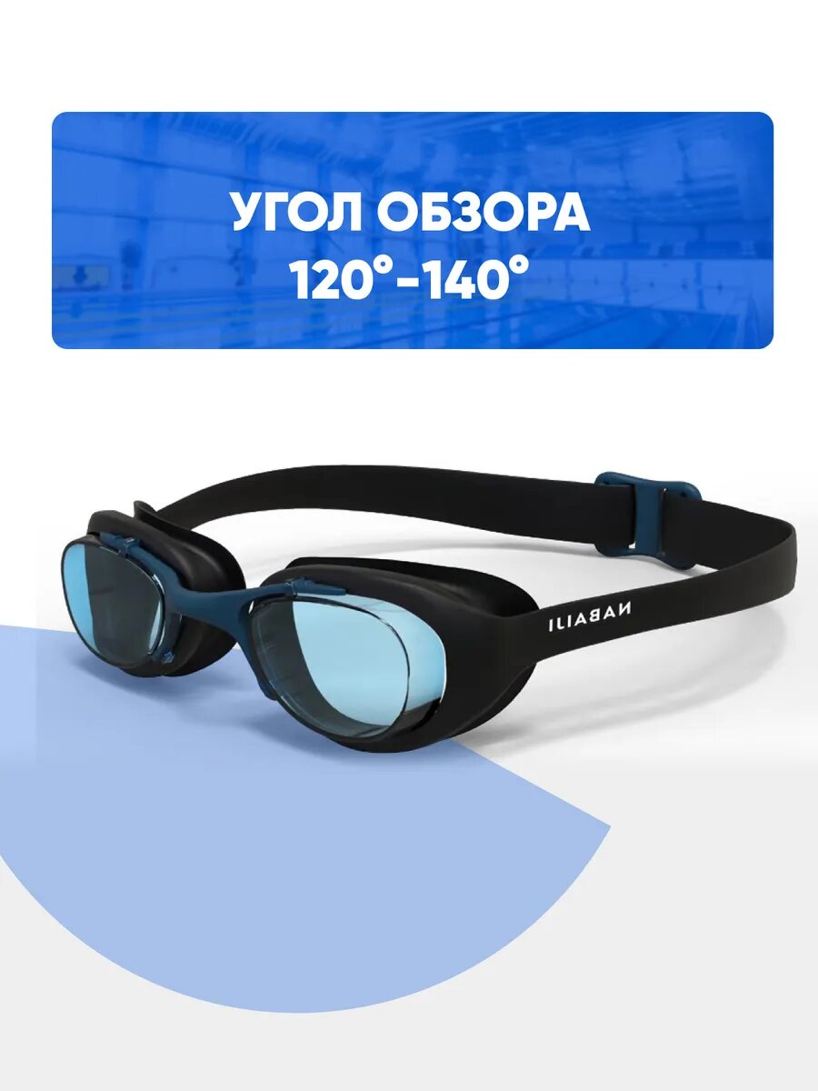 Очки для плавания со голубыми линзами чёрные Nabaiji Xbase 100 информация: