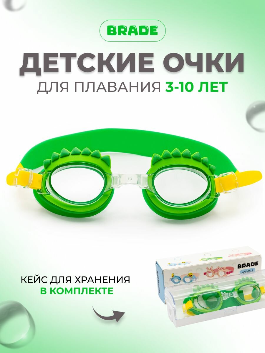 10 цен на Детские очки для плавания BRADE ANIMALS зеленые