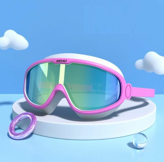Отзывы на Очки-полумаска для плавания детские возраст 3-15 лет JIEHU J-8590 розовые-белые зеркальные
