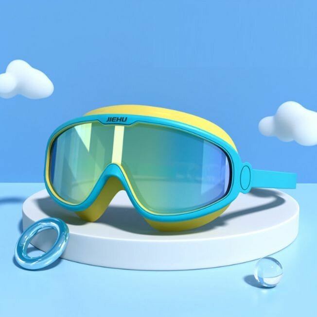 Отзывы на Очки-полумаска для плавания детские возраст 3-15 лет JIEHU J-8590 голубые-желтые зеркальные