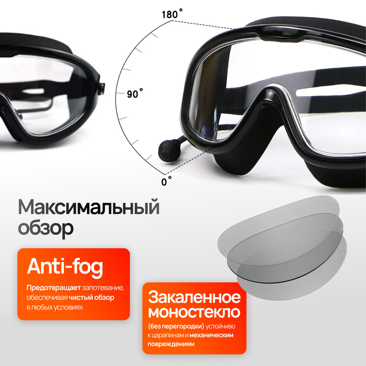 Отзывы на Очки для плавания с большой оправой, маска для плавания, защитные, мужские, женские, очки маска с берушами