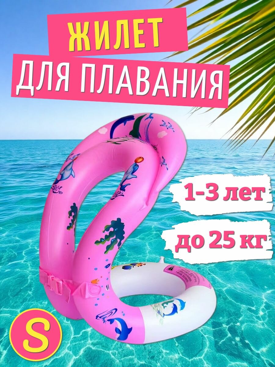 Жилет для плавания детский надувной, розовый/ Жилет "Восьмерка" размер S (1-3 лет) информация:
