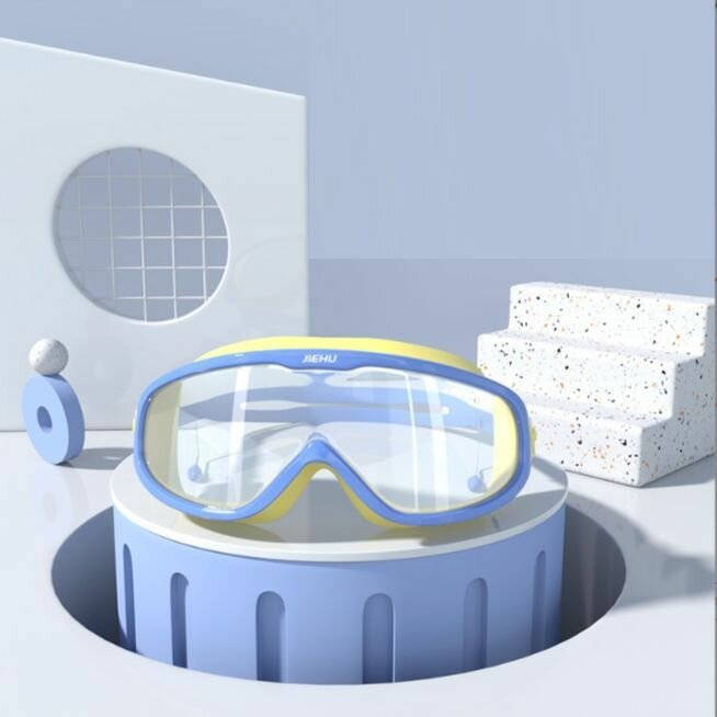 Очки-полумаска для плавания детские возраст 3-12 лет JIEHU J-8580 синие-желтые информация: