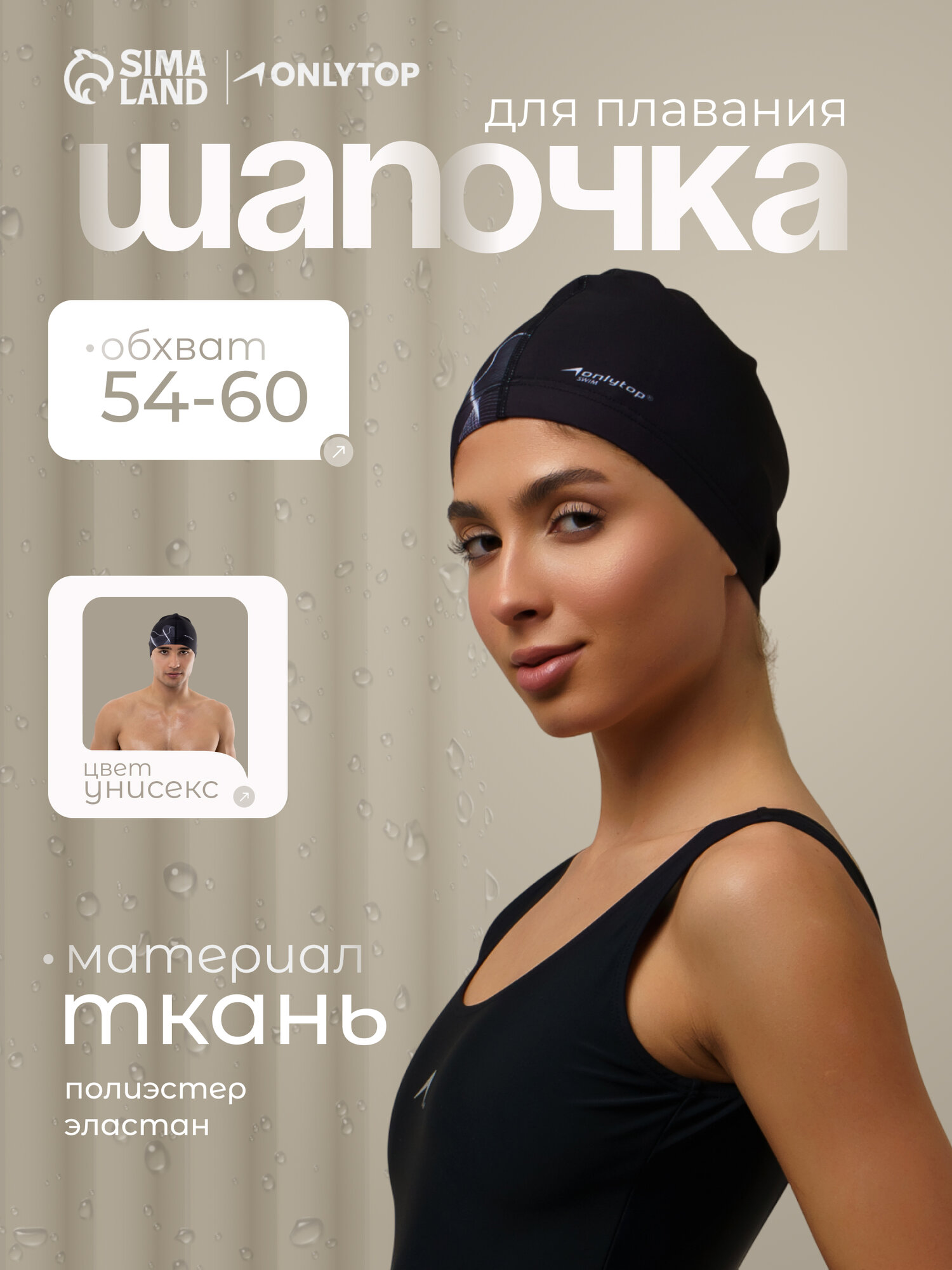 10 цен на Шапочка для плавания взрослая ONLYTOP Waves, тканевая, обхват 54-60 см