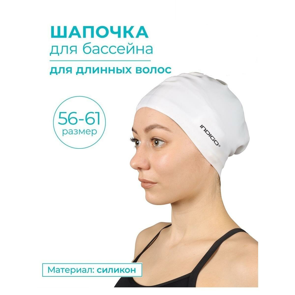Шапочка для плавания силиконовая длинные волосы INDIGO 809 SC Белый информация: