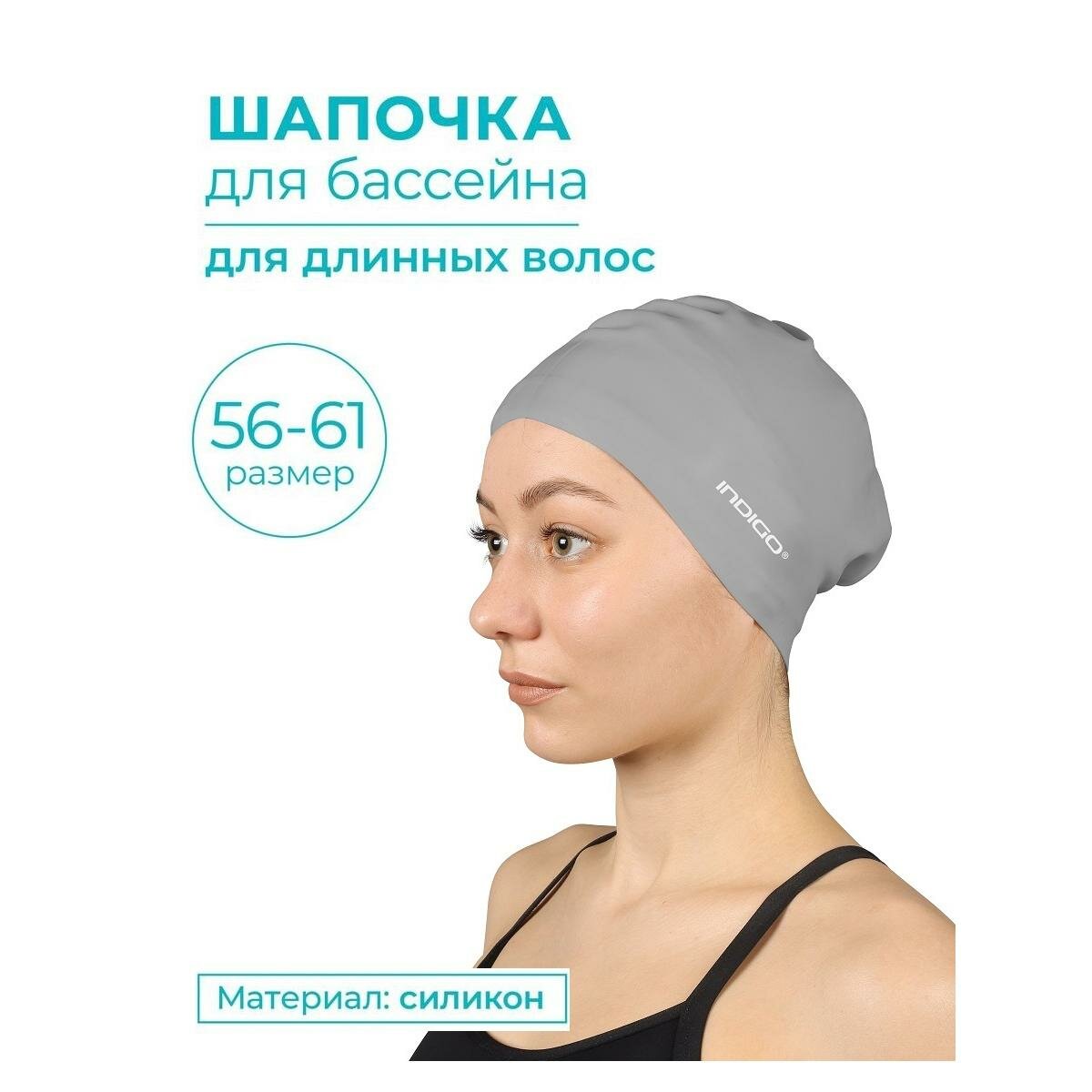 Шапочка для плавания силиконовая длинные волосы INDIGO 801 SC Серый информация:
