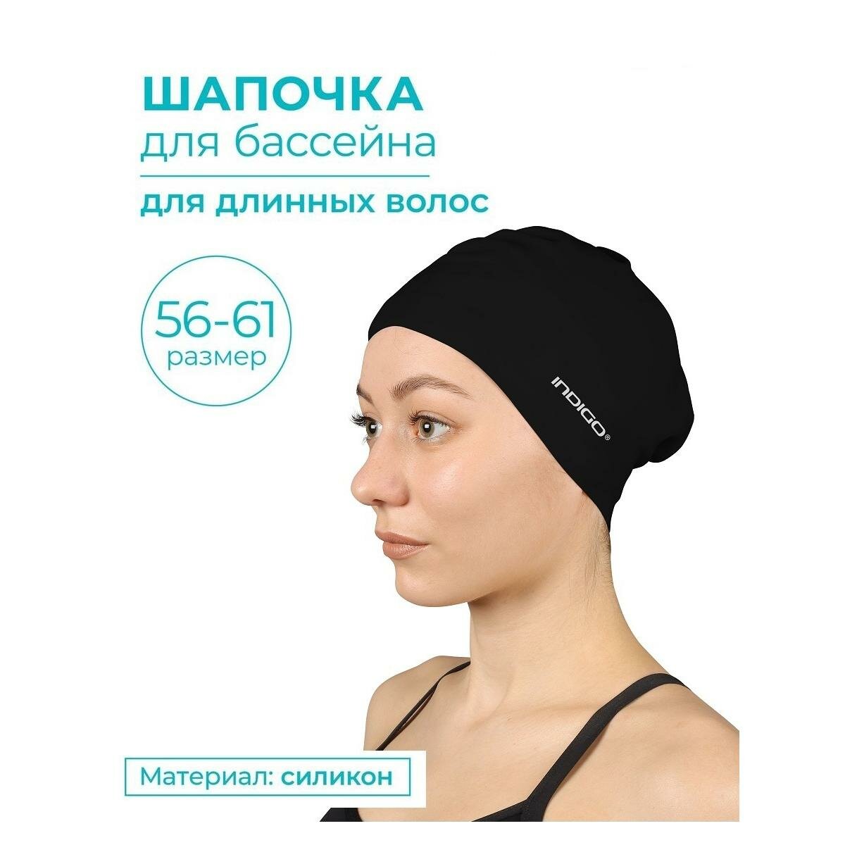10 цен на Шапочка для плавания силиконовая длинные волосы INDIGO 802 SC Черный